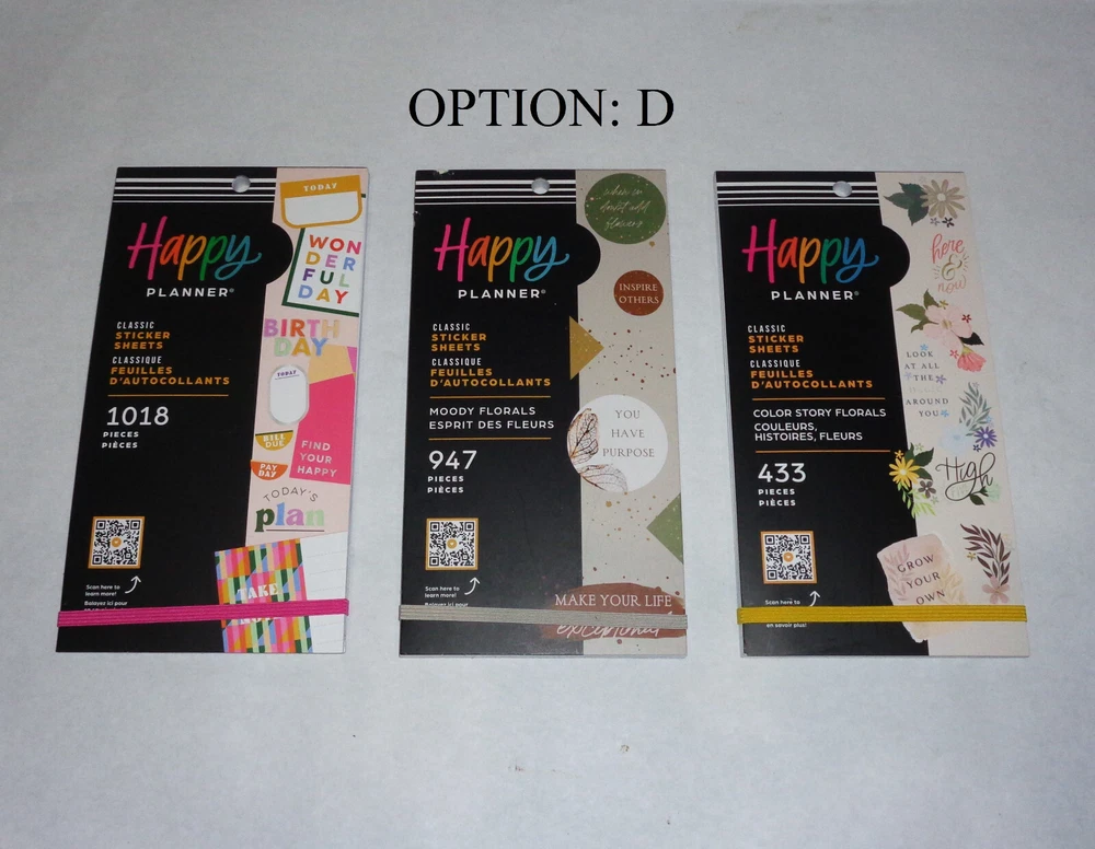 Lot of 3 Sticker Books Brand: Happy Planner Theme: Garden Florals, Wonderful Day, Inspirations, Birthdays, Notes, Reminders, etc. Quantity: A lot of Three (3) Sticker Books Choose from Options A, B, C, D, and/or E SHIPPING : E-commerce selling policies require the seller to ship ONLY to the designated address associated with the buying account (no exception) to protect both the buyer and seller and minimized confusion and possible fraud. Therefore, it is important to update your shipping address PRIOR to purchase/payment, so that the item will arrive safely at the correct address. Shipping service is available only when shipping is offered and/or quoted as part of the shipping service. When the shipping service is not offered, then the buyer is responsible for the local pickup or arranging his/her own shipping. By purchasing the item, the seller has agreed to cooperate with the shipping service to complete the claim should any damage occur. The buyer must send to the seller photos of the damage(s) of both the item and the shipping box within 24 hours of delivery. AFFILIATION: We are not affiliated with the brand names being listed, as such brands mentioned are for identification purposes only. CONDITION : True color/shade may vary due to lighting, camera flash, and adjustments to your screen. The item(s) in the photos are the actual item(s) for sale as pictured, so please refer to the photos for specifications, details, and conditions. When purchasing a used item, please be aware that there will be expected signs of use, such as but not limited to scratches, wears, tears, dents, fades, cracks, oxidization, discoloration, etc. Since condition description is subjective and varies by an individual's interpretation and level of one’s expectation, we rely on the objectivity of photos to provide visual details, description, and condition of the item as every pre-owned item is uniquely different. The photos are an integral part of the listing, and supplemental written information is provided in the description where available. Pre-owned items are sold as-is with shown flaws. All measurements are approximate and/or rounded for reference only. TERMS OF SALE: The buyer hereby agrees and is bound to the following terms upon purchase. Only the item(s) shown in the photo(s) are included (not including background and/or props unless specified). If the item is damaged during shipping to the buyer, the buyer must cooperate with the seller and shipping service to help facilitate the claim. The buyer must submit photos of the damaged item(s) including the shipping box to the seller. For high-value items, the item may need to be kept for inspection by the shipping service. Item(s) returned for other reasons must be returned to the same condition (unused, unaltered) in which they were received, and must include all items intact that were in the original package including and not limited to cords, cables, remote controls, manuals, warranty/rebate cards, free gifts or bonus items. The buyer is liable for loss in value of the item(s) if it is returned in a different condition, with missing pieces, or if the item(s) were not packaged securely to prevent damage during return shipment. Regardless of the origin of the item, the documentation provided, or identification appearing upon the item, the item described and offered here is in no way certified for, recommended for, or provided for any specific use. The purchaser agrees that the seller shall not be held responsible or liable for any injuries or damages, whether incidental or consequential, associated in any way with the item purchased. The purchaser, by bidding/buying on this item, indicates their acknowledgment of, and agreement to, the terms of the above disclaimer.