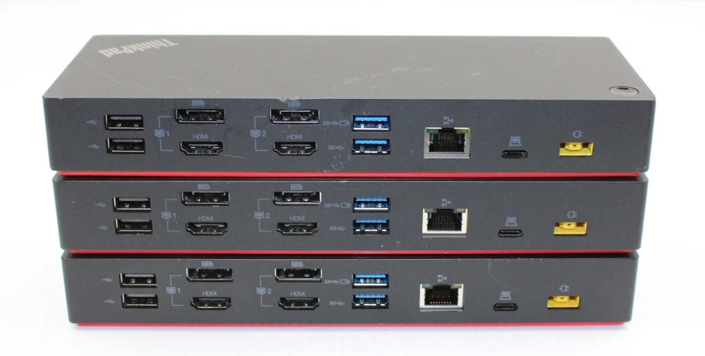 Tested - Lot of 3 - Lenovo | 40AF | DUD9011D1 | ThinkPad Hybrid USB-C with USB-A Dock - No Adapter - Docking Station Only as is Part # 40AF DUD9011D1 Condition Grade: C3 Condition for each will resemble the photo. You will only receive what is in the picture and nothing else will be included. Item will be professionally packaged for shipment. Shipping: Please allow 2-business days for shipment to be processed and shipped out unless otherwise stated. DOMESTIC - Products are shipped via FedEx Ground within the 48-States, Alaska, Hawaii, and Puerto Rico are not included. INTERNATIONAL - Products are shipped via the eBay Global Shipping Program. You must use this shipping method when ordering. *Please note that this may be a stock photo. Feel free to message if any questions. Thank you*
