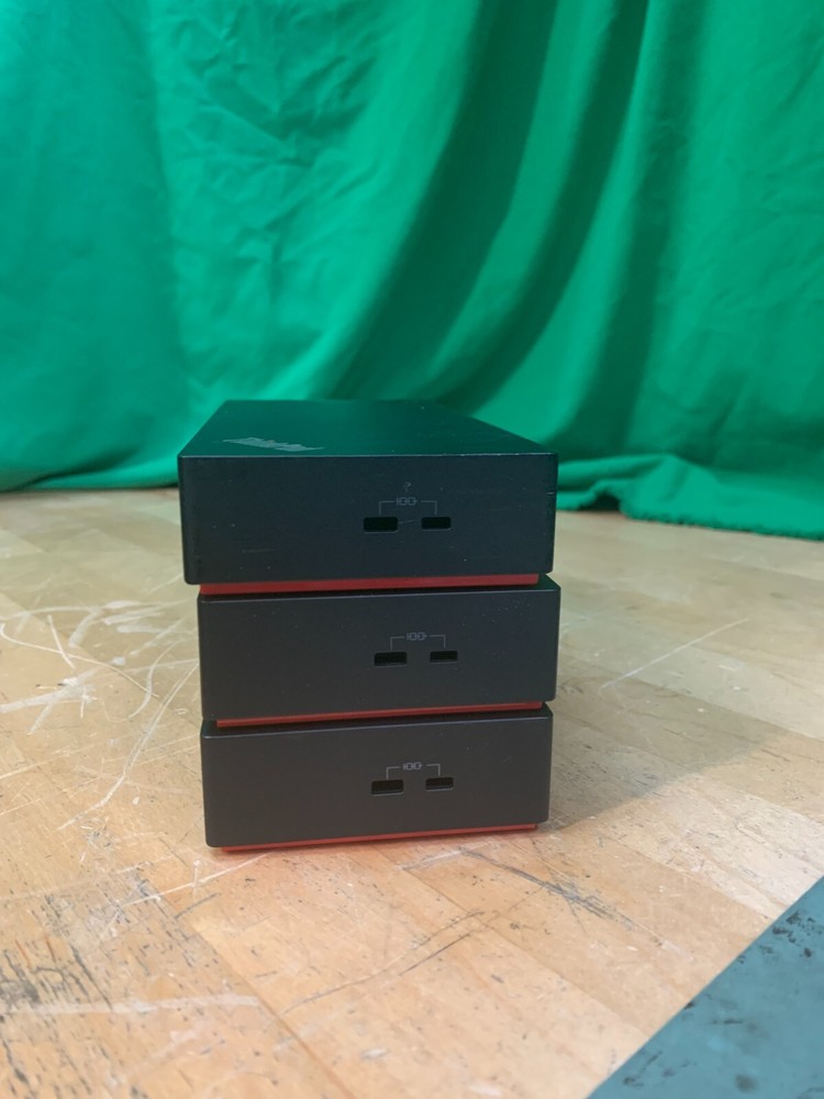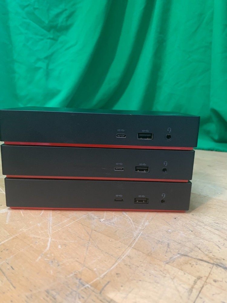 ---------------------------------------------------------------------------------------------------------------------------- **LOT OF 3** Lenovo ThinkPad Universal USB-C Dock 40AY No AC Adapters Manufacturer Lenovo Type USB-C Part Number 40AY Inventory PAllet MOST OF OUR SHIPMENTS ARRIVE IN 2-DAYS OR LESS! ----------------------------------------------------------------------------------------------------------------------------------------------------------------------- PAYMENT & SHIPPING: PayPal is the only acceptable payment method and we only ship to a confirmed buyers address that is verified by PayPal. No exceptions! Payments must be made within 3-days of auction closing. All non-payment members will be added to our blocked list and banned from future eBay purchases. Tracking information will be posted on eBay. FEEDBACK: Feedback is left for buyers that leave Resale Technologies feedback. If for some reason there is an issue with your order please do not hesitate to contact our support team and we will be happy to resolve your issue swift and efficiently. RETURN POLICY We accept returns on all items that qualify for our 30 Day Warranty. We will pay return shipping to our facility for any item that is defective, damaged, or misrepresented in our eBay listing. Items will be repaired, replaced, or refunded. This warranty does not apply if shipped outside the United States. For all other returns, shipping will be paid by the customer and may be subject to a 20% restocking fee. CONTACT US If you have any product questions, please reach out through eBay and we will assist however possible. NOTE: ALL ITEMS THAT WE SELL ARE ASSIGNED AN UNIQUE IAT (INTERNAL ASSET TAG) THAT MUST MATCH WITH OUR INVENTORY SYSTEM IN ORDER TO RECEIVE FULL CREDIT OR EXCHANGE. OUR IAT'S TRACK SERIAL NUMBERS, PARTS/PERIPHERALS, AND CONDITIONS OF EACH ITEM SOLD. **PHOTOS SHOW THE EXACT DOCKS YOU WILL RECIEVE** **SOLD AS IS FOR PARTS BECAUSE ONLY TESTING DONE WAS FOR POWER, AND THEY WERE PULLED FROM WORKING ENVIRONMENTS** **PLEASE MESSAGE US BEFORE PURCHASE IF ANY QUESTIONS, THANK YOU!**
