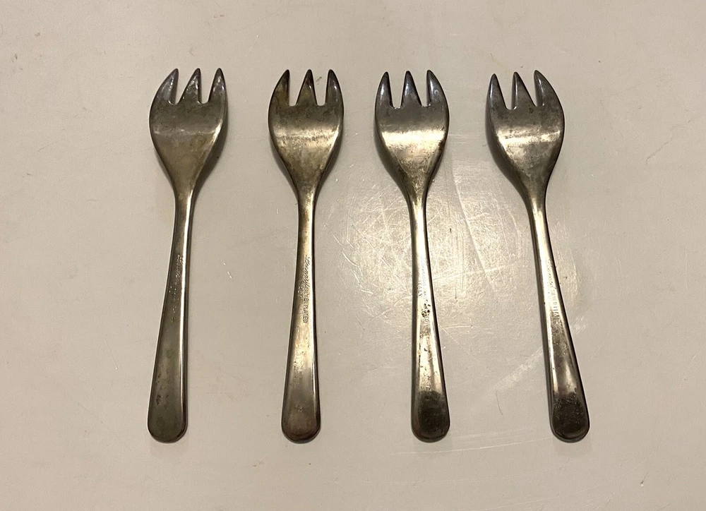 Lot of 4 Vintage Leonard Silver Plated Baby Forks. Condition is Used. Signs of normal wear and tear with aging. About 5”. Please look closely at photos and ask any questions prior to purchasing.