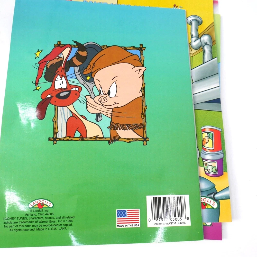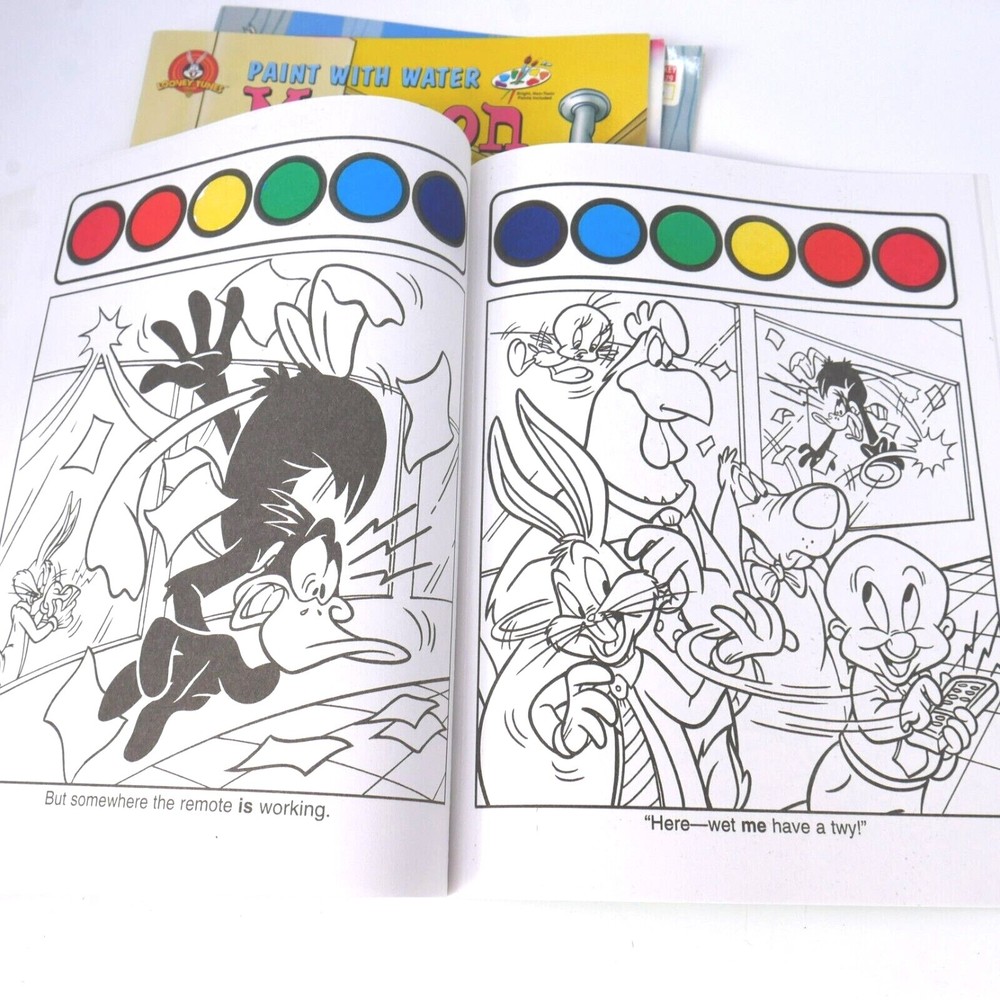 Lot of 4 Vintage Landoll's Looney Tunes Books *Paint w/ water Maroon Soup *Paint w/ Water REMOTE CONTROLLED *Sticker Book MOBY DUCK *Coloring & Activity Book LEWIS & BARK All are new/ unused but may light shelfwear