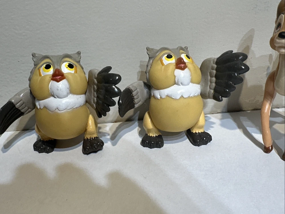 This lot of four vintage McDonald's figures features two beloved Disney characters, Bambi and Owl, standing at heights of 2.5-3.5 inches. These contemporary figurines were manufactured in China and are part of the Disneyana franchise. Perfect for collectors, they are a must-have for any Disney fan.