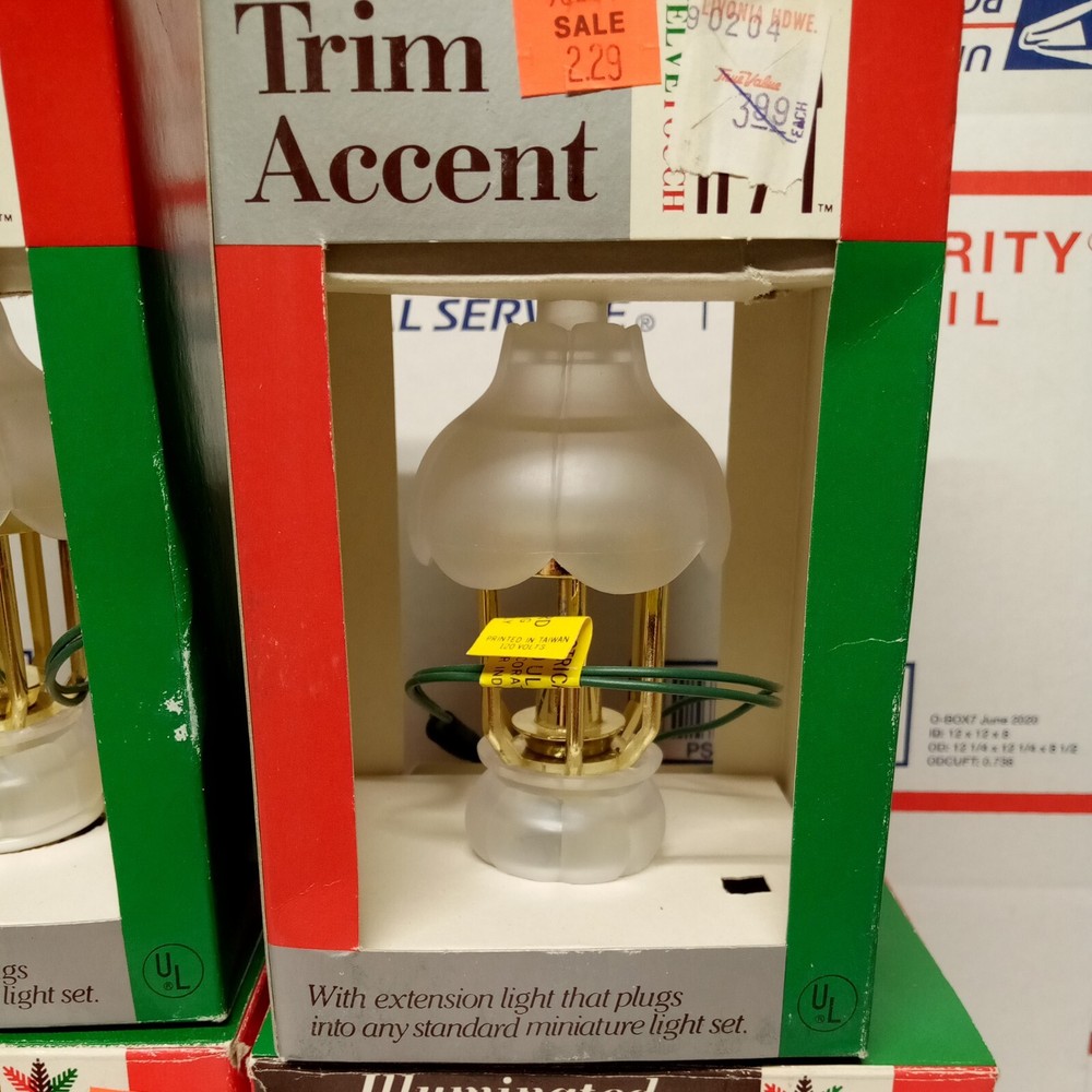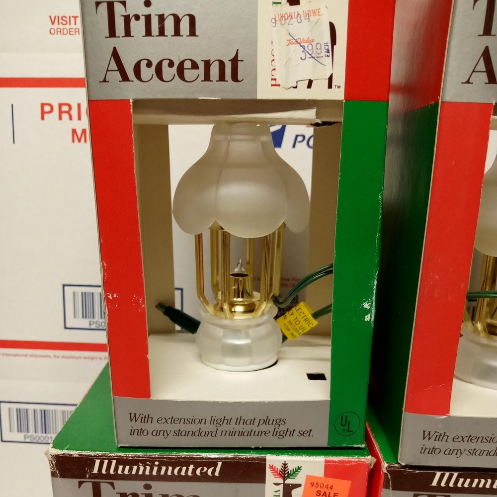 LOT OF 4 VINTAGE VELVETOUCH ILLUMINATED TRIM ACCENT ORNAMENT PLUGS IN TO LIGHTS. This comes with a lot of four with the original boxes they were tested and they do work please see pictures for overall condition the original boxes do have tears and reps and corner damage and signs of show of age the ornaments themselves are all in good condition if you have any questions would like to see more photos please ask before making the purchase this lot will be sold as is no warranty no refunds if you're international buyer any additional shipping charges fees taxes that you may incur will be responsible of the buyer thank you for viewing and have a great day