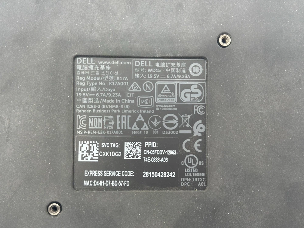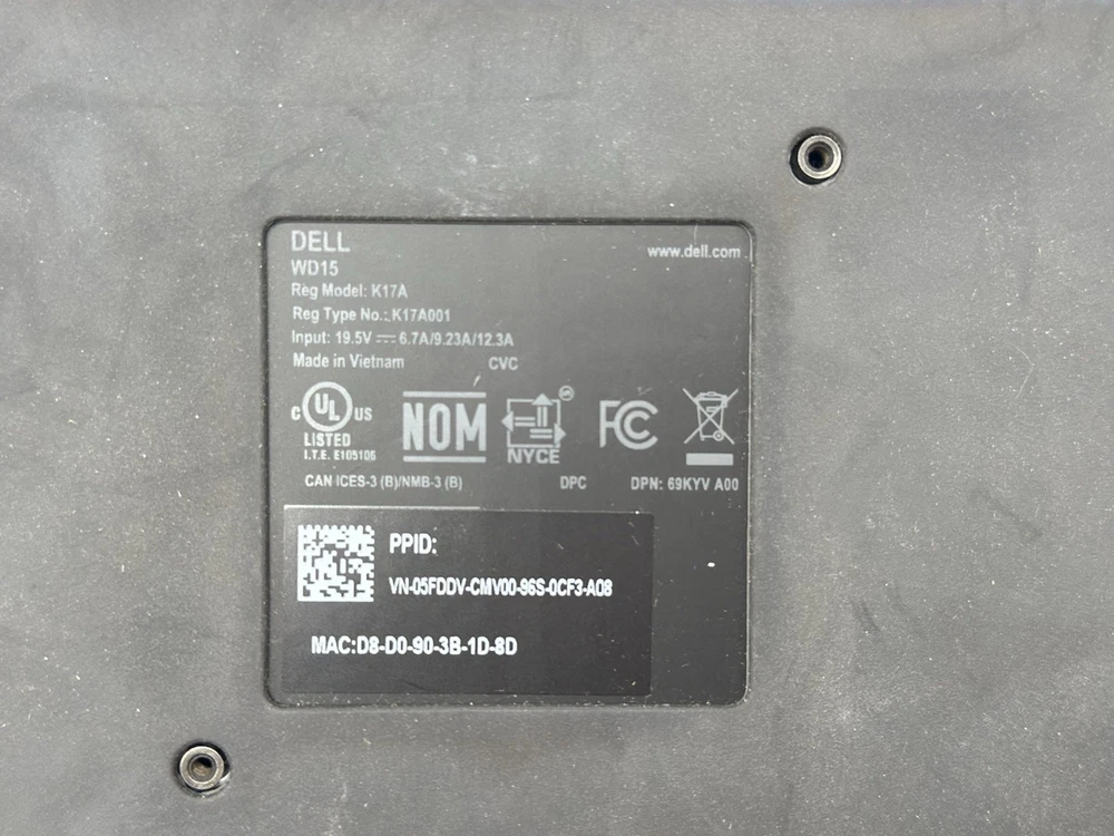 This unit was used and may have some signs of wear. No power supplies, accessories, or instructional booklets are included with this unit. Power tested and turns on. 45 units are included. The Dell K17A/WD15 Docking Station is a versatile accessory designed for Dell laptops, including Alienware, Latitude, and Precision models. With a sleek black design and passive cooling, this docking station offers a variety of ports including VGA, DisplayPort, HDMI, and USB 3.0, as well as support for up to two FHD displays. It also features combo audio, speaker output, and a Kensington Lock Slot for added security. Compatible with various Dell product lines such as XPS and Inspiron, this docking station is a practical and efficient solution for expanding your laptop's connectivity options.