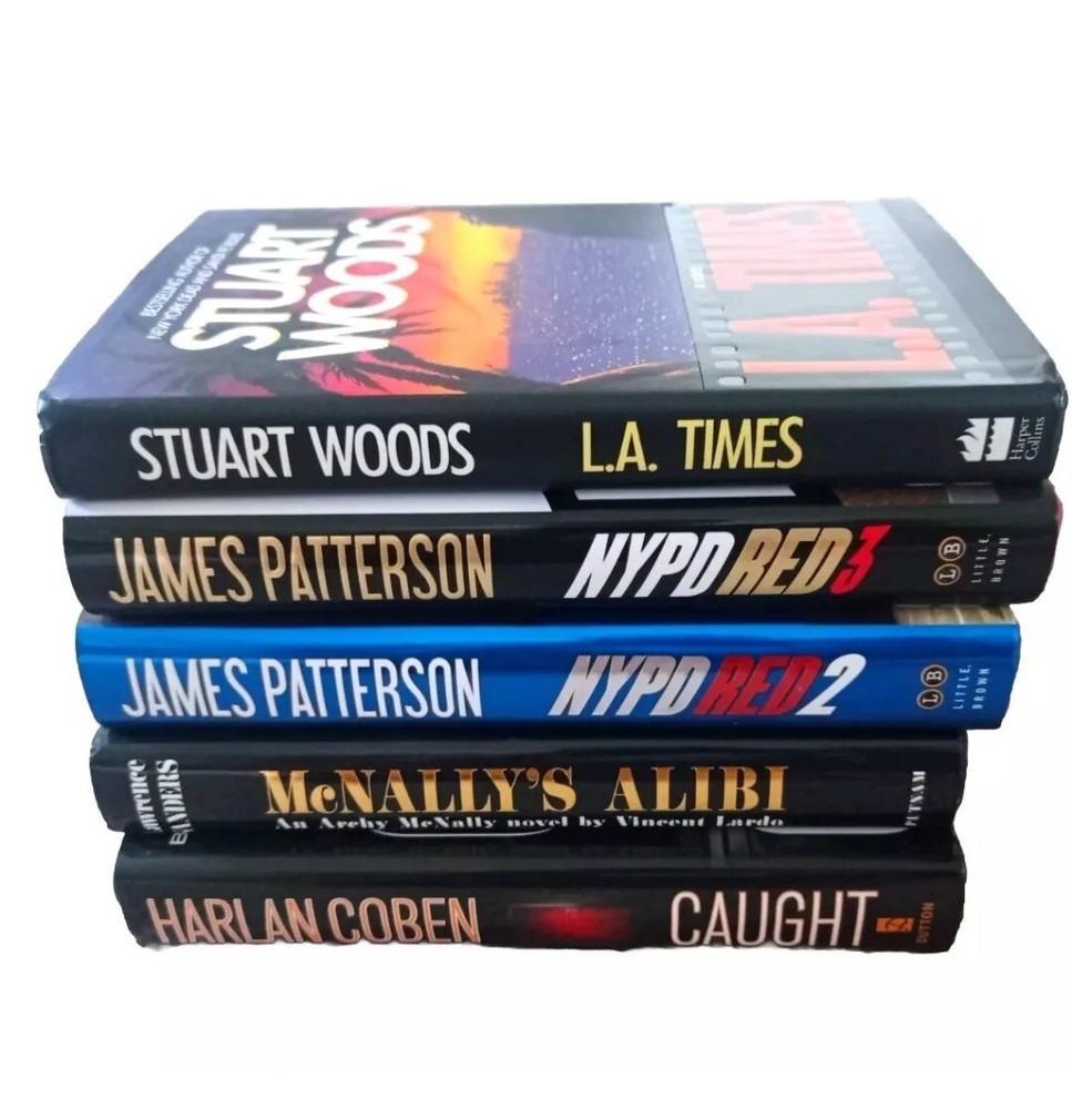 For the serious thriller reader. A MUST HAVE. Get ready to be thrilled with this big box of bestsellers! You will receive 5 randomly selected BIG HARDCOVER bestselling books from authors as: James Patterson, Clive Cussler, Dan Brown, Michael Crichton, Tom Clancy, and David Baldacci, Robert Lundum, Will Staeger, Patricia Cornwell, Stuart Woods, Mario Puzzo, Irish Johansen, Michael Chrichton, David Baldacci, Susa R. Sloan and others. Photos are examples of present and past lots. Your box will vary in titles.