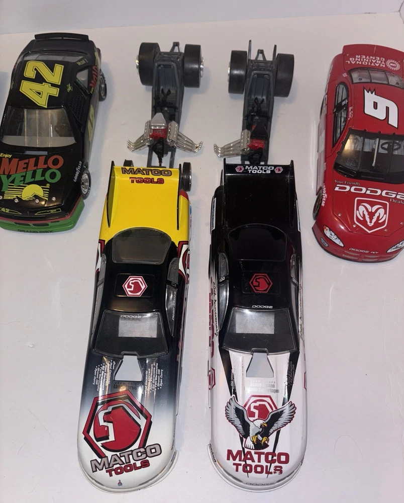 This lot includes 6 Nascar Diecast cars in various brands and sizes. Fans of the NASCAR racing series will appreciate the attention to detail on these 1:64 scale models. Each car is made of high-quality diecast material and features a different driver. These cars are perfect for collectors or as a gift for any NASCAR enthusiast.