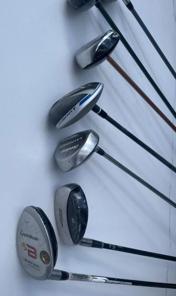 Lot of 7 Golf Clubs Woods, Hybrids - Callaway, Adams, TaylorMade RH And LH