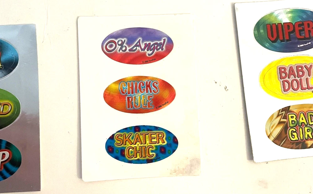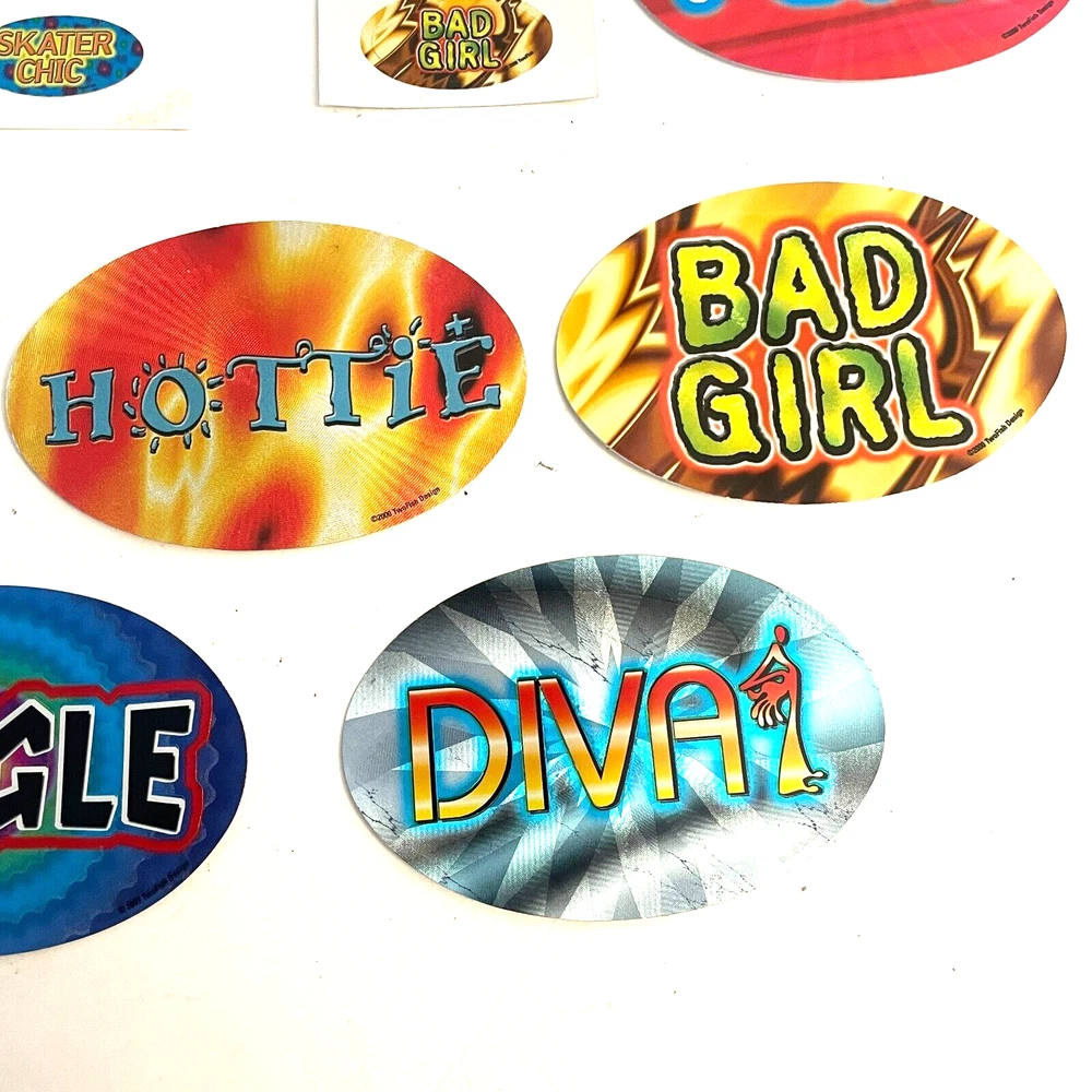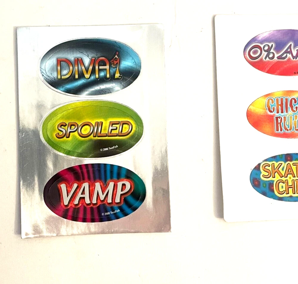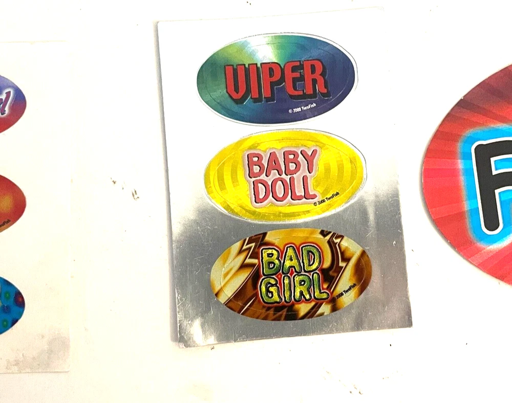 Lot of 9 New Y2K Vending Machine TwoFish Design Funny Phrases Sticker Ovals Conditions: New. Large stickers are 4 1/2" x 2 1/2" and the small stickers are 2" by 1" ITEM(S) EXACTLY AS SHOWN IN THE PICTURES. PLEASE SEE ALL PICTURES FOR FULL ITEM CONDITION AND DETAILS. If the item is used, any and all flaws will be shown in the detailed pictures. SEE OUR FEEDBACK! Buy with confidence! USA SELLERS. FAST, FREE SHIPPING!