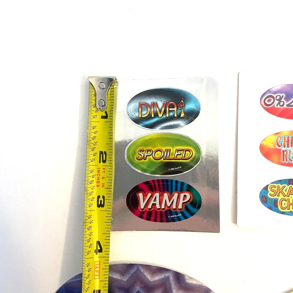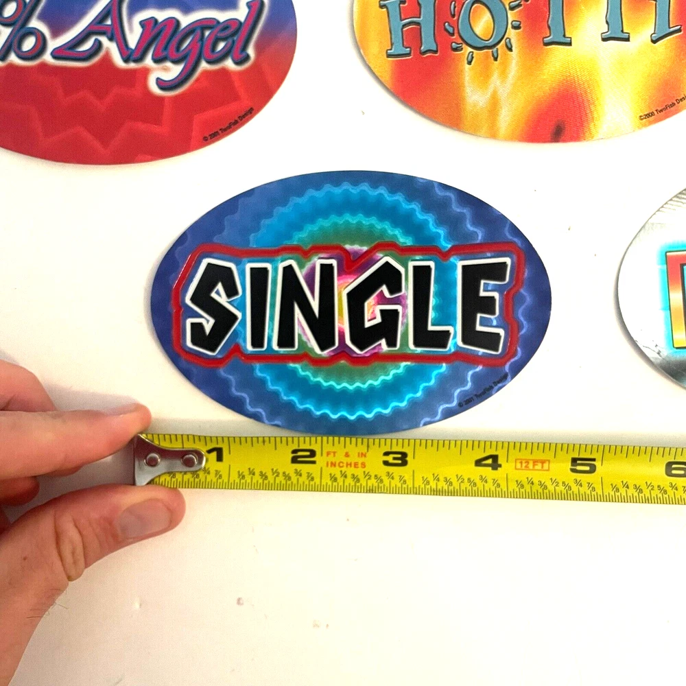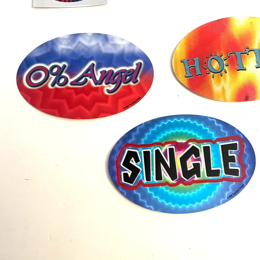 Lot of 9 New Y2K Vending Machine TwoFish Design Funny Phrases Sticker Ovals Conditions: New. Large stickers are 4 1/2" x 2 1/2" and the small stickers are 2" by 1" ITEM(S) EXACTLY AS SHOWN IN THE PICTURES. PLEASE SEE ALL PICTURES FOR FULL ITEM CONDITION AND DETAILS. If the item is used, any and all flaws will be shown in the detailed pictures. SEE OUR FEEDBACK! Buy with confidence! USA SELLERS. FAST, FREE SHIPPING!