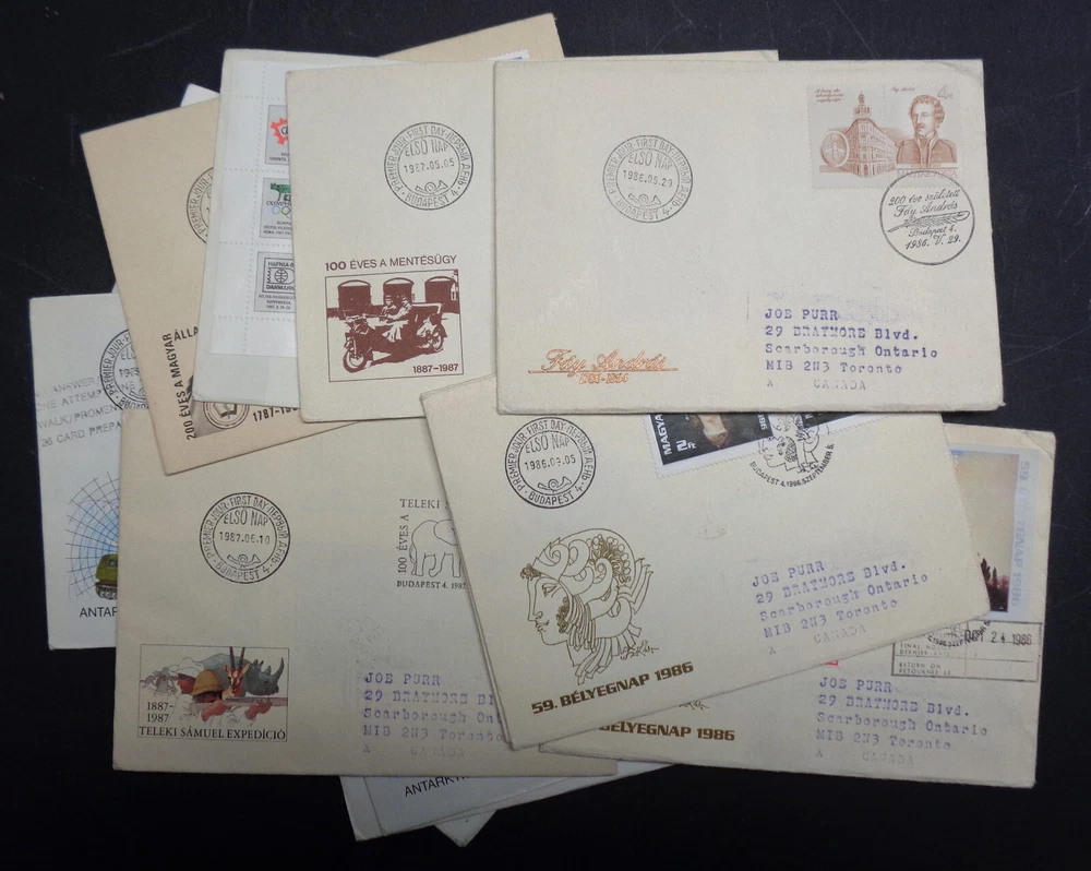Lot of Over 100 Hungary FDC's to Canada in Album. Includes 30 Registered Covers from 1983-1987. All covers are addressed to Scarborough Ontario, MIB 2N3 Toronto, Canada. ***** Email us about signing up for our mailing list******* Exciting new items every day Philately - The Quiet Excitement Shipping We try to Ship Within 5 Business Days of Cleared Payment Will calculate international shipping PLEASE READ International Buyer's Shipping Instructions International shipping "" First Class Registered ENVELOPE " NO EXCEPTIONS ! ** Insurance, Registered mail or Confirmation/Signature Guarantee is included in the price of shipping for the USA only ** Our goal is to please our customers, provide quality and unique items, have successful transactions and earn positive feedback with a 5 star rating. We strive for accurate descriptions, quick turnaround, detailed communication, and reasonable shipping charges on every lot. Your feedback is important to us. If you feel anything about the transaction was less than 5 star, please give us the opportunity to rectify the situation Thank you The Staff at Henry Gitner Philatelists, Inc.