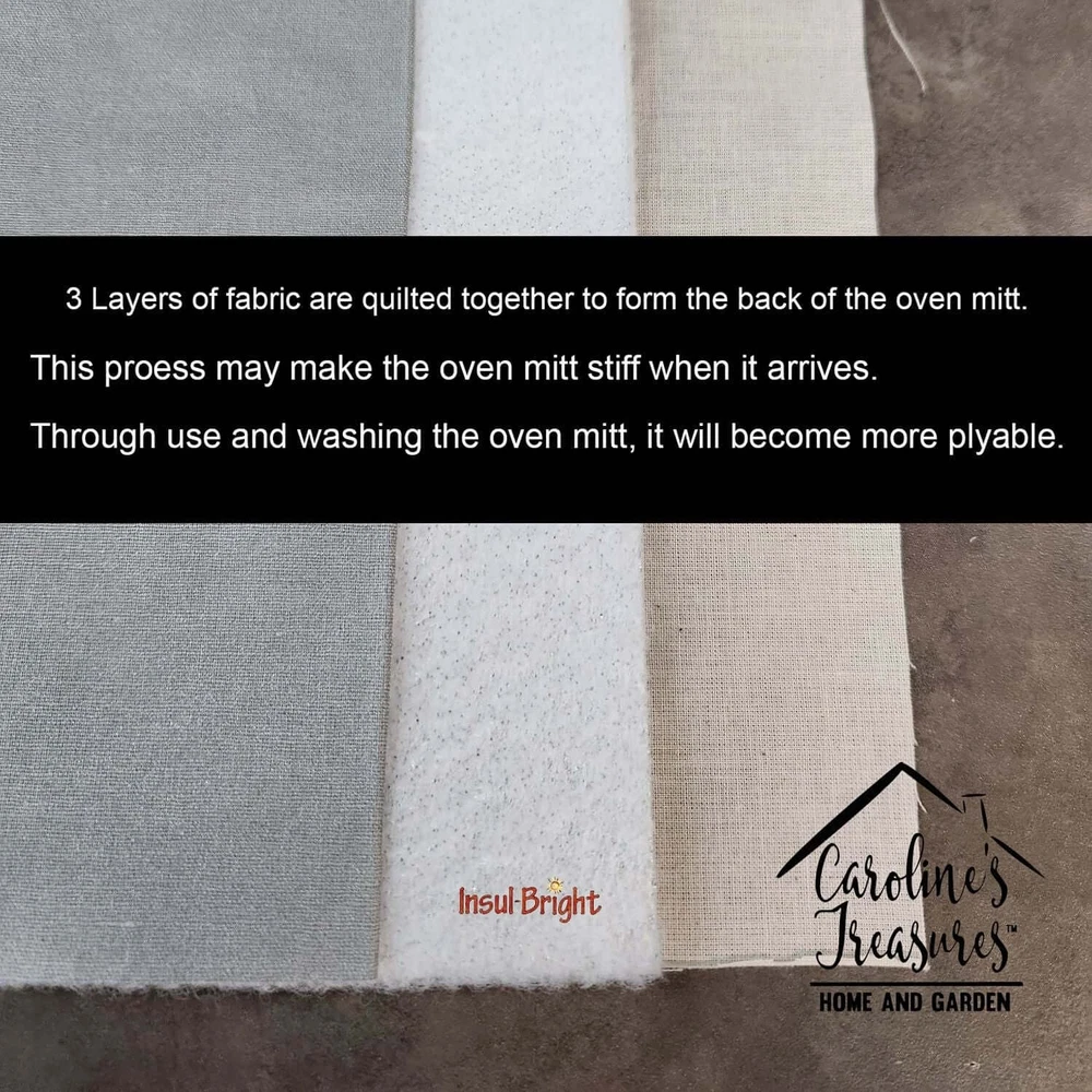 Highlights Unparalleled Heat Resistance - Crafted with layers of quilted protection and Insul-Bright fabric, our oven mitt effectively resists conduction and radiant energy, offering superior heat resistance for safety during cooking or grilling. Stylish & Functional Design - Showcasing beautiful artwork on the front and a sleek black bias tape trim, our oven mitt complements any kitchen decor while featuring a convenient hoop for easy hanging and storage. Universal Fit - Measuring about 12 inches long and 8 1/2 inches wide, our oven mitt comfortably accommodates a diverse range of hand sizes, perfect for every culinary enthusiast, from home cooks to professional chefs. Machine Washable & Durable - Made to last with a design that withstands regular washing and tumble drying. Initially firm due to the quilting process, it becomes more pliable with use and washing, ensuring longevity and sustained performance. Great gifts: Great hostess gifts, a housewarmning gift for that new home or a wedding gift for that new couple. All of our products feature artwork from one of our artists or desingers. A great gift for your dog walker, groomer, or pet sitter. Corgi gifts,Corgi collectibles Specification Brand:Caroline's Treasures Details Oven Mitt featuring breed specific Corgi artwork. Presenting our Large Right Hand Thick Heat Resistant Oven Mitt, an indispensable tool for any culinary enthusiast. This mitt boasts layers of quilted protection on both sides, providing outstanding resistance against extreme heat. Embellished with beautifully printed artwork, it adds an extra dash of charm to your kitchen decor. At about 12 inches long and 8 1/2 inches wide, this oven mitt offers a generous fit, accommodating a diverse range of hand sizes. Its design is enhanced by a sleek Black bias tape trim, finished with a convenient hoop for easy hanging. Fresh out of the packaging, the quilting process may give the mitt a stiff feel, but rest assured, it will soften with use and washing. Our mitt is crafted with a unique center fabric, Insul-Bright, a composite material made from polyester fibers, needle-punched through a nonwoven substrate and a reflective metallized film. This smart material resists both conduction and radiant energy, reflecting heat back to its source, all while remaining breathable. Our oven mitt is machine washable and safe for tumble drying. It's a perfect gift for your favorite Chef, BBQ enthusiast, or just a little treat for yourself! Experience safety, style, and convenience rolled into one with this exceptional oven mitt.