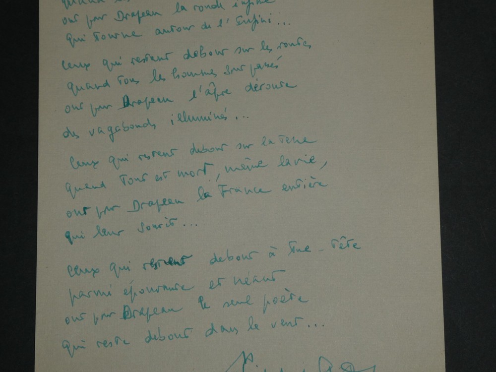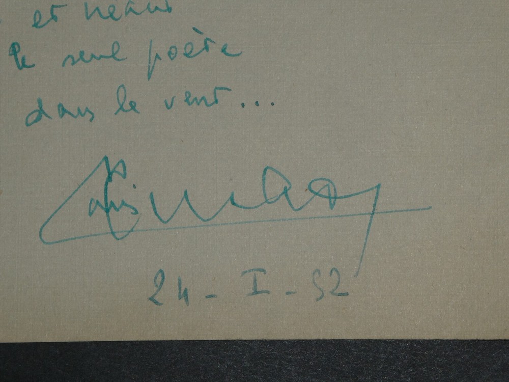 Kostenlose eBay-Eintragsvorlage, entworfen von dewiso.com Louis Amade Poem Autogrammkarte Unterzeichnet Patriotica " Alle Der Bleiben Die Beschreibung dieses Artikels erfolgte durch automatische Übersetzung. Bei anstehenden Fragen, wenden Sie sich bitte an uns. Louis AMADE PATRIOTISCHES UNTERZEICHNETES AUTOGRAMM-GEDICHT „Diejenigen, die stehen bleiben“ 1952 Dichter, hoher Beamter und Präfekt Louis AMADE – UNTERZEICHNETES GEDICHT, „Diejenigen, die stehen bleiben“, 24. Januar 1952. Gedicht in alternierenden und halbregelmäßigen Reimen, bestehend aus fünf Vierzeilern. (8 bis 9 Silben). Es thematisiert Patriotismus und Mut. „Haben Sie als Flagge den einzigen Dichter, der im Wind stehen bleibt …“ Abmessungen: 25,3 x 16,8 cm Zustand : Weitere Informationen finden Sie auf den Fotos. Anzahl Seiten: 1 Seite Louis AMADE Louis Amade, geboren am 13. Januar 1915 in Ille-sur-Têt und gestorben am 4. Oktober 1992 in Paris 4ᵉ, ist ein hoher Beamter, Oberpräfekt, Dichter und Texter. Wikipedia Kontaktieren Sie uns Autogrammbriefe, alte Papiere, alte Bücher, Fotografien, Gravuren, Briefmarken... Wir bewerten und/oder kaufen Ihre Briefe, Briefsammlungen und alten Bücher in ganz Frankreich. Zahlung Es werden Zahlungen per eBay, PayPal, Überweisung oder Scheck akzeptiert. Senden Sorgfältige Lieferung in stabiler, wasserdichter Verpackung innerhalb von drei Tagen. Berücksichtigen Sie zusätzlich die üblichen Verzögerungen bei der Post. Zurück Zufriedenheit garantiert oder Ihr Geld zurück. Wenn Sie nicht vollständig zufrieden sind, erfolgt die Rücksendung auf Kosten des Verkäufers für Europa. Auf Kosten des Käufers für den Rest der Welt. Louis AMADE – UNTERZEICHNETES GEDICHT, „Diejenigen, die stehen bleiben“, 24. Januar 1952.Gedicht in alternierenden und halbregelmäßigen Reimen, bestehend aus fünf Vierzeilern. (8 bis 9 Silben). Es thematisiert Patriotismus und Mut. „Haben Sie als Flagge den einzigen Dichter, der im Wind stehen bleibt …“ Abmessungen: 25,3 x 16,8 cm Zustand : Weitere Informationen finden Sie auf den Fotos. Anzahl Seiten: 1 Seite