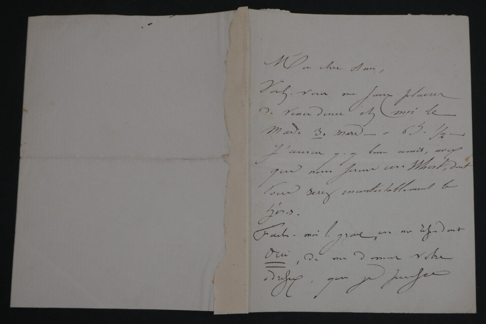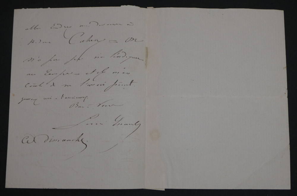 Lettre autographe signée de Louis ERNAULT où il invite son destinataire à diner. État: Voir photos pour plus de détails. Dimensions : 10,5 x 13,5 cm. 2 pages. Satisfait ou remboursé. Si vous n'êtes pas entièrement satisfait, je reprends la marchandise avec retour à ma charge pour l'Europe et à la charge de l'acheteur pour le reste du monde. N’hésitez pas à visiter ma boutique et affiner vos recherches en fonction des catégories qui vous intéressent. Ma boutique L'Art Délivré. Lettres autographes, vieux papiers, livres anciens, photographies, gravures, timbres… Nous expertisons et/ou rachetons dans toute la France vos lettres, collections de lettres et livres anciens. Merci de votre visite. Jérôme KAYSER. Lettre autographe signée de Louis ERNAULT où il invite son destinataire à diner. État: Voir photos pour plus de détails. Dimensions : 10,5 x 13,5 cm. 2 pages. Satisfait ou remboursé. Si vous n'êtes pas entièrement satisfait, je reprends la marchandise avec retour à ma charge pour l'Europe et à la charge de l'acheteur pour le reste du monde. N’hésitez pas à visiter ma boutique et affiner vos recherches en fonction des catégories qui vous intéressent. Ma boutique L'Art Délivré. Lettres autographes, vieux papiers, livres anciens, photographies, gravures, timbres… Nous expertisons et/ou rachetons dans toute la France vos lettres, collections de lettres et livres anciens. Merci de votre visite. Jérôme KAYSER.