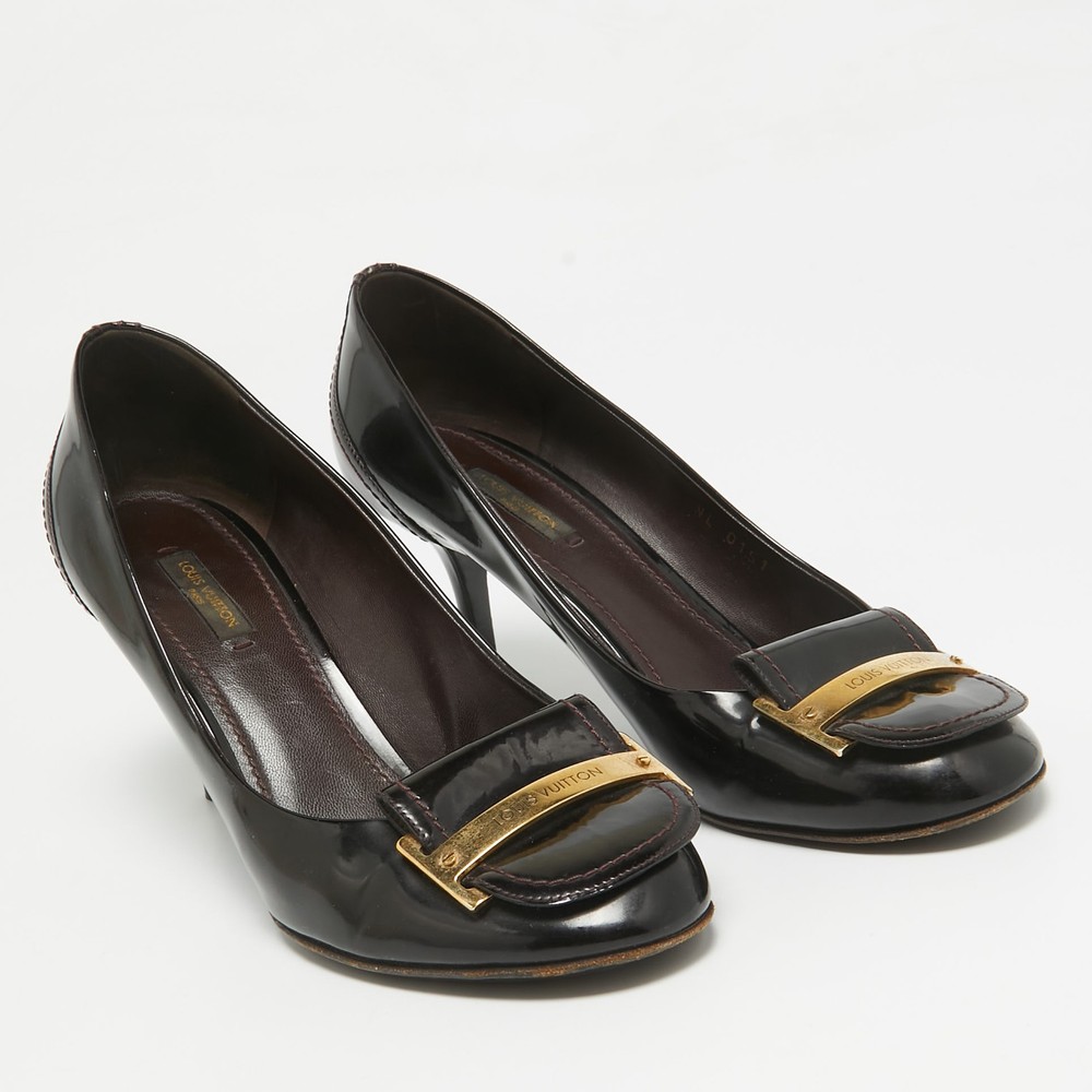 Exude sophistication with these Louis Vuitton Amarante patent leather pumps. Featuring a gold tone metal accent and 8.5 cm heels, they bring timeless luxury and a polished finish to any outfit.Certified by The Luxury Closet - This item has gone through a detailed authentication process overseen by our experts. We offer a lifetime guarantee of authenticity on all our items. Import duties, taxes and charges are not included in the item price. These charges are the buyers responsibility. Please check with your country’s customs office to determine what these additional cost will be prior to buying. Our eBay Store About Us Contact Us Add to Favorite Sellers Louis Vuitton Amarante Patent Leather Metal Logo Pumps Size 40 $192.5 Exude sophistication with these Louis Vuitton Amarante patent leather pumps. Featuring a gold tone metal accent and 8.5 cm heels, they bring timeless luxury and a polished finish to any outfit. Product Details Brand Color Burgundy Dimensions Material Patent Leather Size 40 Outsole Width 8.5 cm Outsole Length 25 cm Heel Height 8.5 cm Includes The Luxury Closet Packaging Certified by The Luxury Closet This item has gone through a detailed authentication process overseen by our experts. We offer a lifetime guarantee of authenticity on all our items. How We Check The in-house team of experts at The Luxury Closet is highly trained to verify the authenticity and the condition of the luxury products. They ensure that only 100% authentic items are put on sale.The evaluation process is unique with its own mix of assessment criteria and differs according to the category. Each item is evaluated based on the following combination of hallmarks, hardware, stitching, symmetry, material, craftsmanship, stamping, codes, hologram stickers, and packaging. Our authenticators also check if the items have been modified or amended (e.g., aftermarket diamonds, replaced batteries, repaired bags, etc.) International Buyers Import duties, taxes and charges are not included in the item price. These charges are the buyers responsibility. Please check with your country’s customs office to determine what these additional cost will be prior to buying.