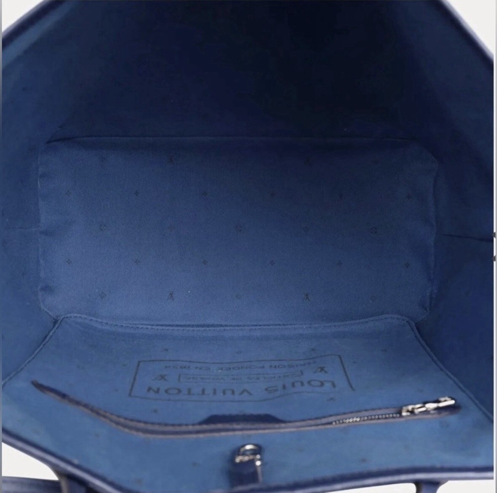 This Louis Vuitton Escale Giant Neverfull MM Tie Dye Tote Handle Shoulder Bag in Blue is a stylish and functional accessory for women. The bag features a unique tie-dye pattern, and the handle and strap are made of leather in a beautiful blue color. The bag is large and has a silver hardware color, with a fabric lining in blue. The bag also comes with a wristlet and original dust bag, making it a complete set. The Louis Vuitton Neverfull MM model is a popular choice for those who want a large, versatile bag. This shoulder bag is perfect for everyday use or for special occasions.
