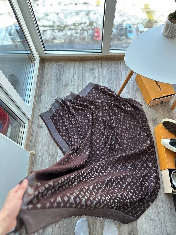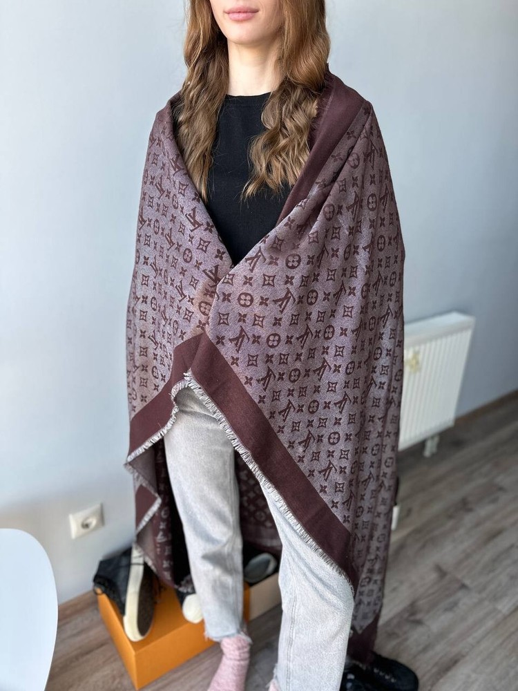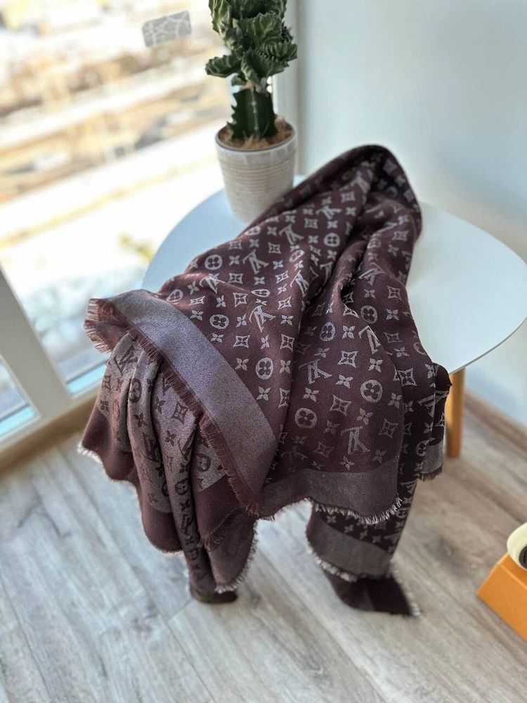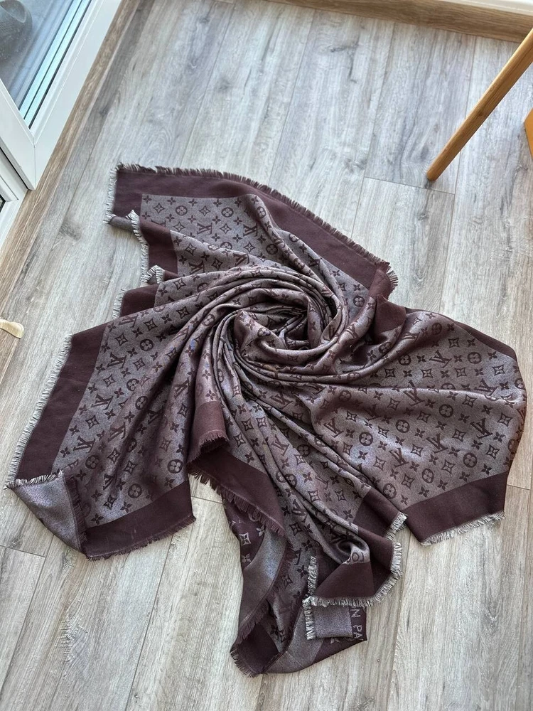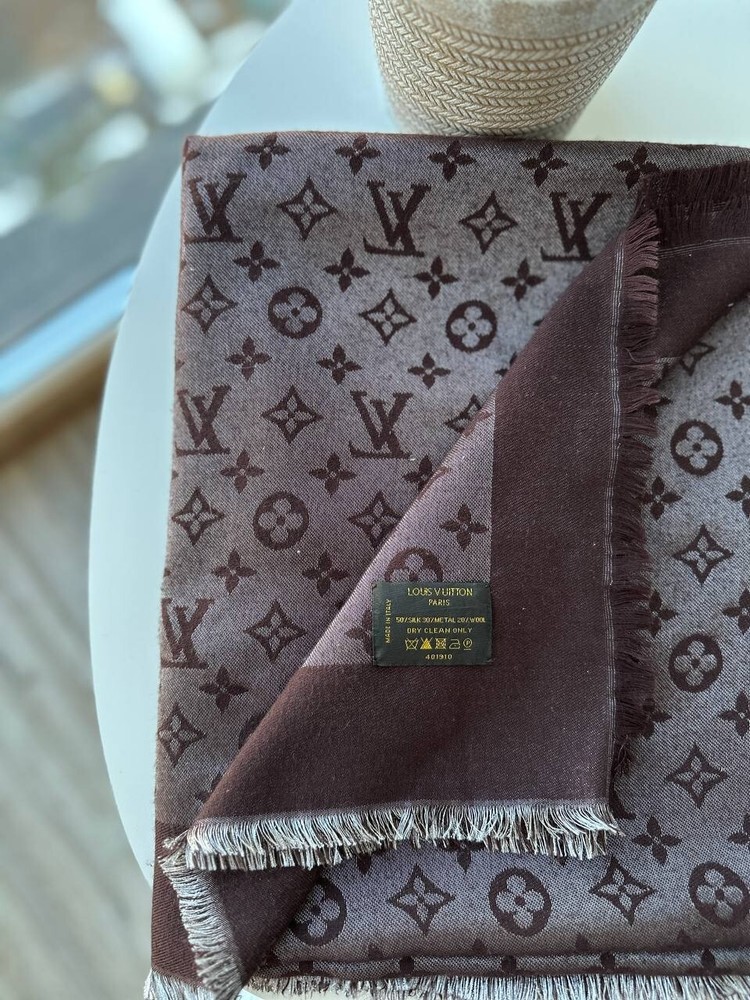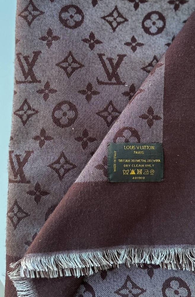 This Louis Vuitton scarf is a rare and limited unisex item made of silk, metal, and wool. It features the brand's iconic monogram pattern with logo accents. The scarf is designed as a rectangle shape and is suitable for all seasons. It is crafted in Italy and offers a multifunctional design with a variety of themes such as nature, money, and holidays.