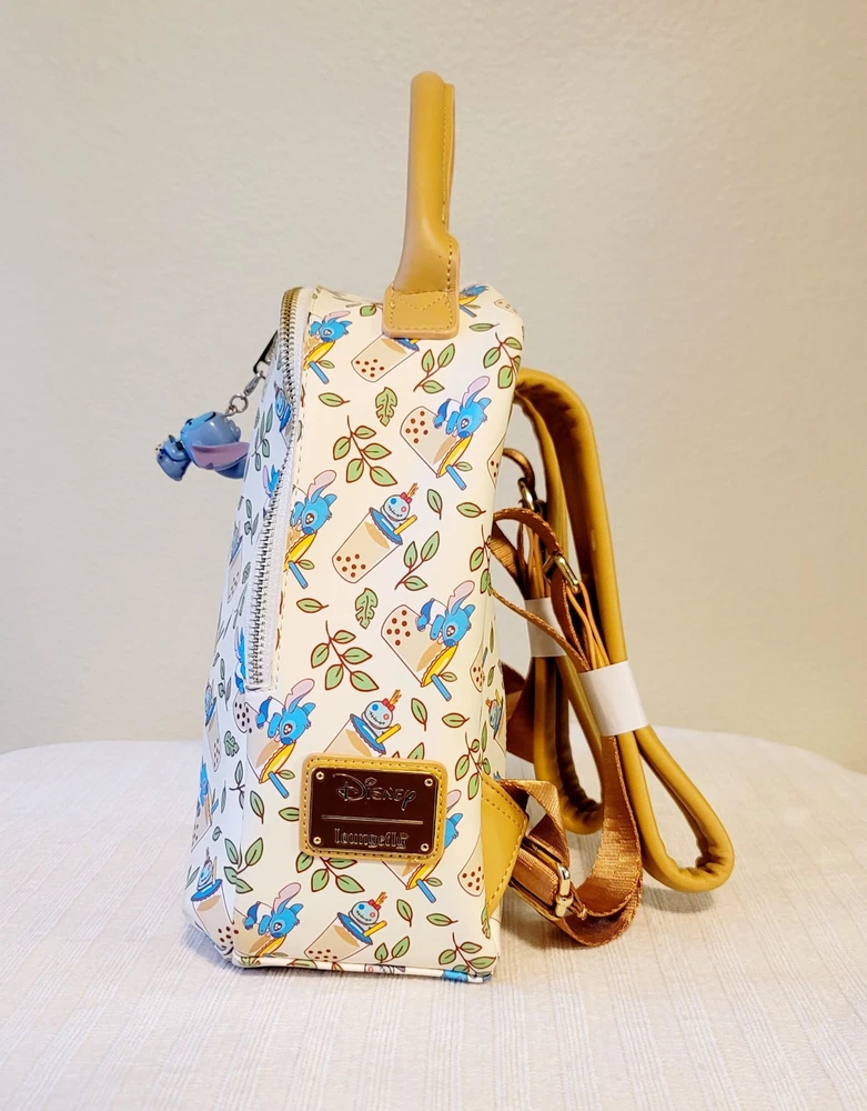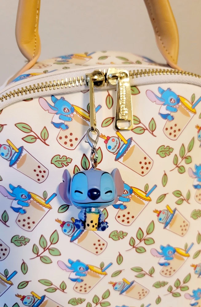 3 items --> Lilo & Stitch Boba Mini Backpack, stitch boba keychain, and stitch boba Funko! Condition: all items in this are basically new without tags. The backpack was never worn. * Loungefly Lilo & Stitch Boba Backpack * Sip away with Stitch and Scrump! Life's a par-tea with the fun-loving alien and Lilo's rag doll from Disney's Lilo & Stitch, shown clinging onto their yummy boba milk tea cups in an allover leaf pattern. Your new boba run buddies will help you carry the essentials in this faux leather Loungefly mini backpack featuring an enamel brand badge, adjustable straps, interior lining with a boba cup pattern and zip pocket, and gold-tone hardware. Approx. 9 1/2" W x 10" H x 3 3/4" D Material: Polyurethane; polyester lining * FUNKO Disney Lilo & Stitch Pop! (With Boba) Pop Disney 1182 Product ID 16748979 Do you love a nice cool boba as much as Stitch? Then you need to add this Pop! vinyl figure to your collection featuring Stitch holding a boba drink. 3 3/4" Vinyl