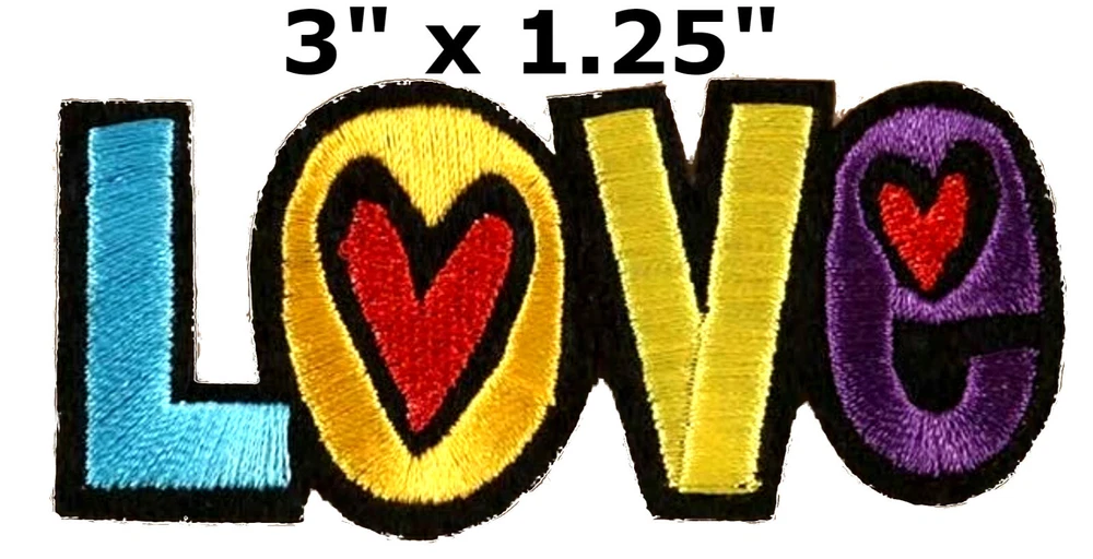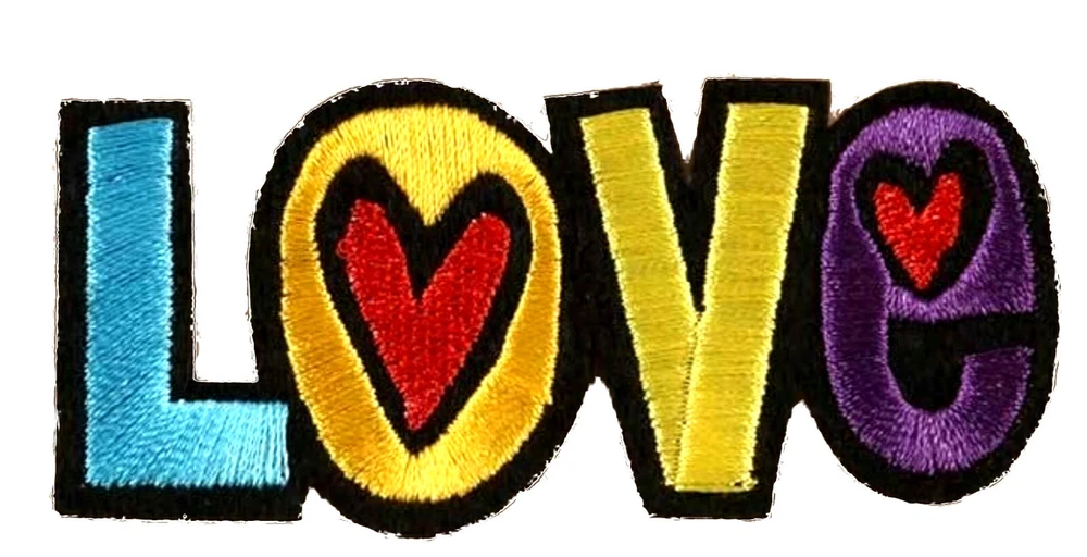 "Love" Text - Embroidered Yellow Heart -Patch Embroidered Iron-On Applique