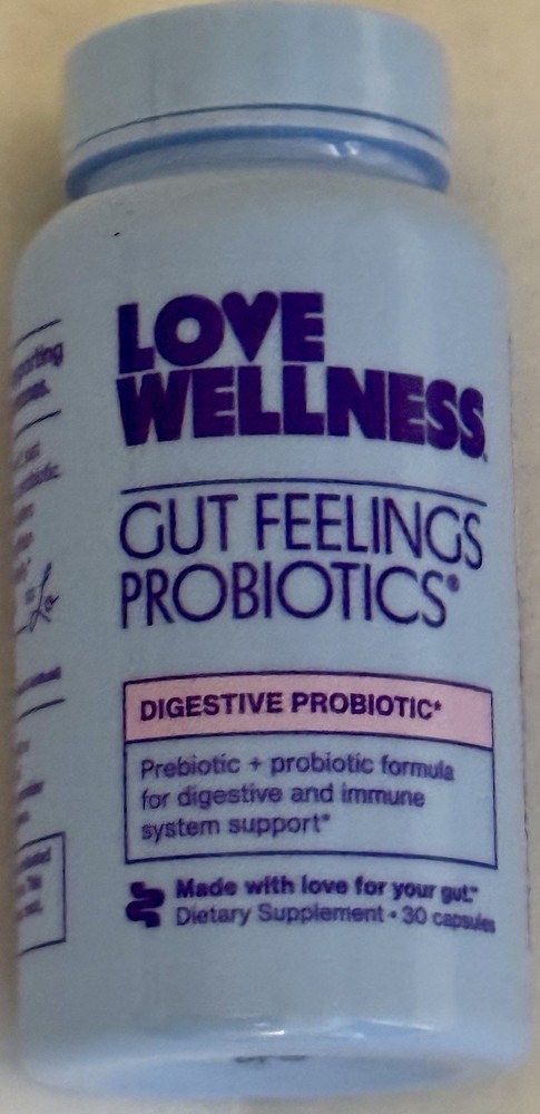 Love Wellness Gut Feelings Probiotics 30 Caps for Digestive Health Exp 07/2026