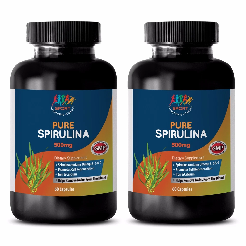 Spirulina 500mg The Miracle Superfood Prevents Arthritis, Good for Liver. Improves Digestion & Healthy Eyes. Body Detoxifier, Help Allergies. Immunity Booster, Help in Weight Loss. Reduces Menopausal Symptoms. Instant Energy Booster. Mood Enhancer, Help in Hangover. Reduces Appetite, Eradicates Bad Breath. Boost Cognitive Performance. Promotes Sexual Strength. Good for Dental Health, Reduces LDL Level. Reduces Dark Circles, Anti-Ageing. Keeps Nails Healthy, Cleanses Skin. Prevents Hair Loss, Promotes Hair Growth. 2 Bottles, 120 Capsules Made In USA Incredible Health and Beauty Benefits of Spirulina: Spirulina is a type of cyanobacteria, also termed as blue-green algae that grow in fresh water lakes, salty lakes, oceans, ponds and rivers in subtropical climates. Unlike other bacteria, it has chlorophyll and takes its energy from sunlight just like plants. Because of its nutritional power it is called ‘superfood’ and is highly recommended to vegetarians. It has been used for centuries for numerous medicinal purposes. It has the potential to overcome malnutrition and has been used widely in the third world countries to feed the starved people. NASA is already researching it as a food substitute for the astronauts. Spirulina is an excellent source of B-12, iron, calcium, magnesium, potassium and protein; and it is available in tablet, powder and flake form too. This ‘miracle from sea’ is used to help various health problems. Here are some incredible health and beauty benefits of spirulina. Spirulina is Extremely High in Many Nutrients: Spirulina is an organism that grows in both fresh and salt water. It is a type of bacteria called cyanobacterium, which is often referred to as blue-green algae. Just like plants, cyanobacteria can produce energy out of sunlight, via the process called photosynthesis. Spirulina was consumed by the Aztecs back in the day, but became popular again when NASA proposed that it could be grown in space and used by astronauts. A standard daily dose of spirulina is 1-3 grams, but doses of up to 10 grams per day have been used effectively. It is actually quite amazing how nutritious it is. A single tablespoon (7 grams) of dried spirulina powder contains: Protein: 4 grams. Vitamin B1 (Thiamin): 11% of the RDA. Vitamin B2 (Riboflavin): 15% of the RDA. Vitamin B3 (Niacin): 4% of the RDA. Copper: 21% of the RDA. Iron: 11% of the RDA. It also contains decent amounts of magnesium, potassium and manganese, and small amounts of almost every other nutrient that we need. This is coming with only 20 calories, and 1.7 grams of digestible carbohydrate. How Spirulina Improves Love Performance: Discover this exciting news how to enjoy your love life even more by improving your man’s love performance and at the same time give him all the health benefits of Spirulina. Spirulina improves love performance by boosting your energy levels and enhancing performance. Spirulina will help to increase endurance and stamina by boosting energy levels. When in the process of having sexual intercourse, it can give you easily the strength to double the time – and enjoyment! Any woman would be happy if their men lasted in bed longer – hey it’s enjoyable. Spirulina Plays A Huge Part In Our Sex Lives: Apart from the wide list of health benefits of spirulina, it also plays a huge part in our sex lives. The blue-green algae extract helps the artery walls to relax and reduces the blood pressure. High blood pressure is the main cause of vessel damage and clogged arteries which do not go well with helping for a better and stronger erections. It also helps in good blood flow which is very important for achieving harder erections. It is essential in helping to improve sexual vigour. Spirulina has an amazing factor, it contains relatively high content of arginine which is important for the production of male seminal fluid and keeping the blood clean. Spirulina Modulates the Immune Response: Spirulina has long been revered for its ability to strengthen the immune system. Because it actively promotes cell regeneration, it helps wounds heal quicker, and makes recovery from illnesses occur faster. Spirulina fortifies one's immune system, leaving the person less likely to experience diferent health problems. Spirulina is well-known to be a healthy addition to one’s diet. It is a blue-green microalgae that is classified as a cyanobacteria and is found freshwater lakes, rivers and ponds. It includes various elements terrific for promoting human health and especially immune system health, in turn, helping the body work at its desired capacity. But what exactly does that mean, and how does it work? This post will explore why spirulina is widely believed to benefit the immune system. Spirulina An Antioxidant Powerhouse: One of the health benefits of Spirulina comes from its antioxidant properties. Spirulina protects our cells by warding off inflammation and other dis-eases in the body. Spirulina has been shown to positively reduce the risk of heart disease by lowering “the bad” LDL cholesterol and triglycerides in the body while promoting HDL “the good” cholesterol. In higher doses, spirulina could reduce blood pressure. Spirulina has 4 grams of protein in a single tablespoon making it a more concentrated source of protein than red meat and only 20 calories. With a high concentration of bio-available iron, it is excellent during pregnancy and for those with anemia as it will not cause constipation. The health benefits of Spirulina are compounding in the body as the proteins and nutrients are bioavailable and easily absorbed. Spirulina a Powerful Energy Boost: There are few people these days, in our busy, modern world, that couldn’t use an extra boost of energy, and spirulina offers just that. Due to its many nutrients, including B1, it can naturally increase energy levels. It enhances energy as the mixture helps to unlock sugar from our cells to boost metabolic energy. The health benefits of sp