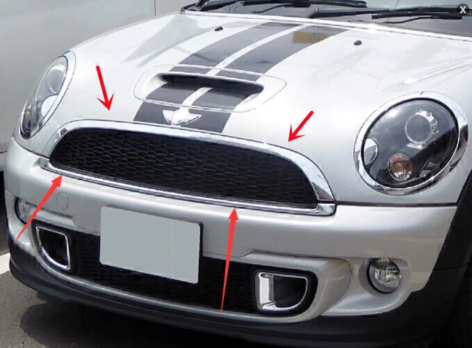 2pcs Upper & Lower Chrome Hood Molding Grille Trim For 2007-2015 Mini Cooper Note: please refer to compatibility chart above for specified vehicle information and make sure your original part# matches one of the numbers listed here before purchasing to ensure fitment. Any questions please send us eBay message. Features: -Hood Trim Molding -Chrome -ABS Plastic -Easy Snap-in Installation Part Number: Part # 51 11 7 209 904/51 11 2 751 625 (51117209904/51112751625) - Lower grille trim Part # 51 13 2 751 040 (51132751040) - Upper grille trim Please verify fitment to your MINI! Fitment: 2007-2013 Mini Cooper Hatchback S and JCW (R56) 2008-2014 Mini Cooper Clubman S and JCW (R55) 2009-2015 Mini Cooper Convertible S and JCW (R57) 2012-2015 Mini Cooper Coupe S and JCW (R58) 2012-2015 Mini Cooper Roadster S and JCW (R59) Package Included: 1 set Chrome Hood Molding (upper & lower) What you might need for installation: Easy Snap-in Installation. Installation Instruction Not included. Installation Hardware not Included - Reuse Factory Hardware.