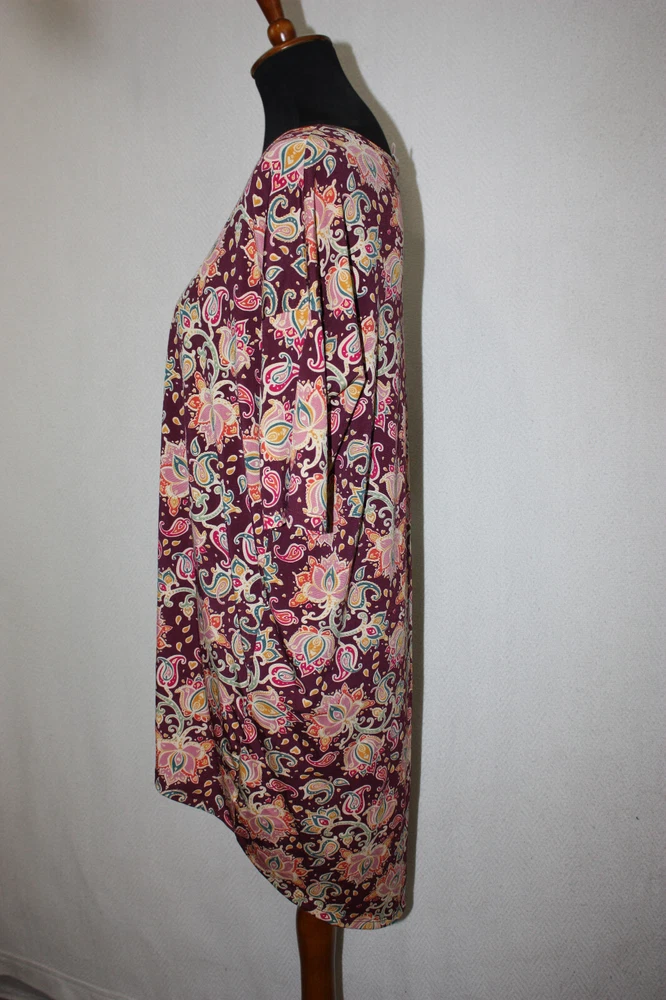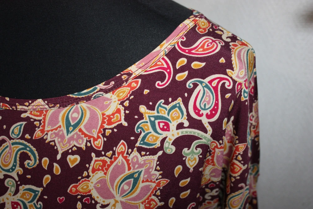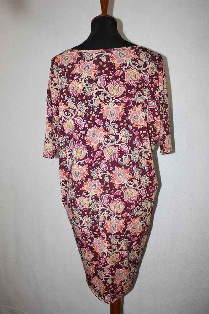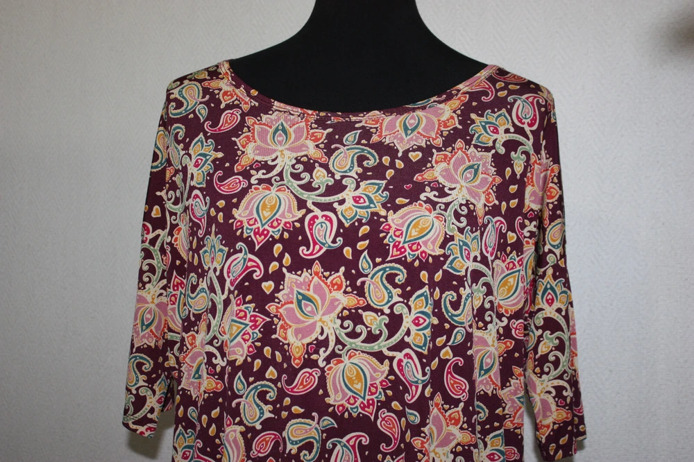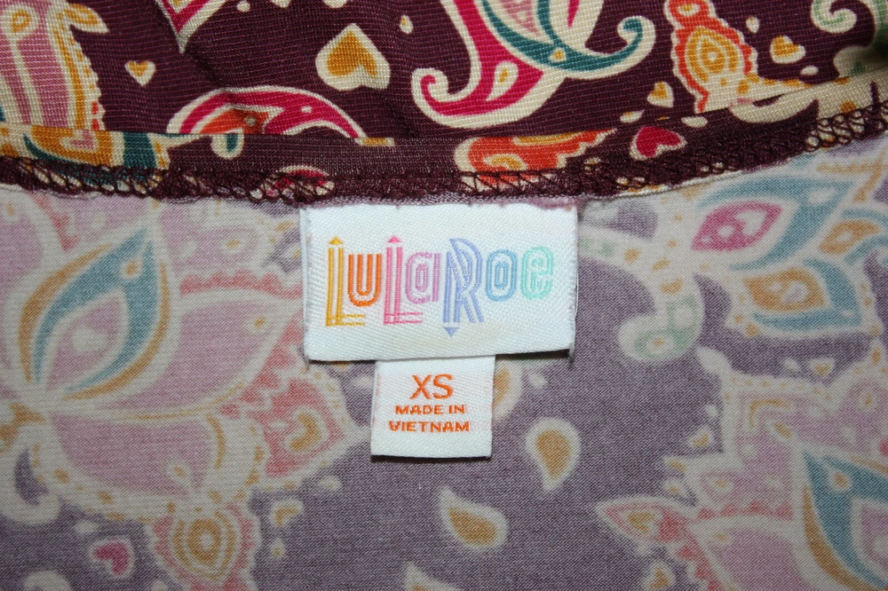 Welcome to Pim's clothing sales Excellent condition lightweight pullover tee. Colorful floral and paisley print on burgundy background. Stretchy polyester fabric. Brand: Lularoe Material: 95% Polyester 5% Spandex Size : XS tagged Shoulders: 24 Bust: 24 armpit to armpit Length: 34 back of collar to hem (Ask if you need more measurements) Please Remember all Clothing Items may fit differently depending on Brand, Fit, Use or Prior customization. We strongly urge our customers to check measurements first to guarantee proper fitting. Please be sure to check out our listings frequently for more high quality Designer Brand clothing items at a fraction of the price. We are getting new inventory all the time! You never know what amazing deals you may find :) Shipping discounts will be provided for multiple purchases - Please contact us after multiple purchases for an updated invoice.