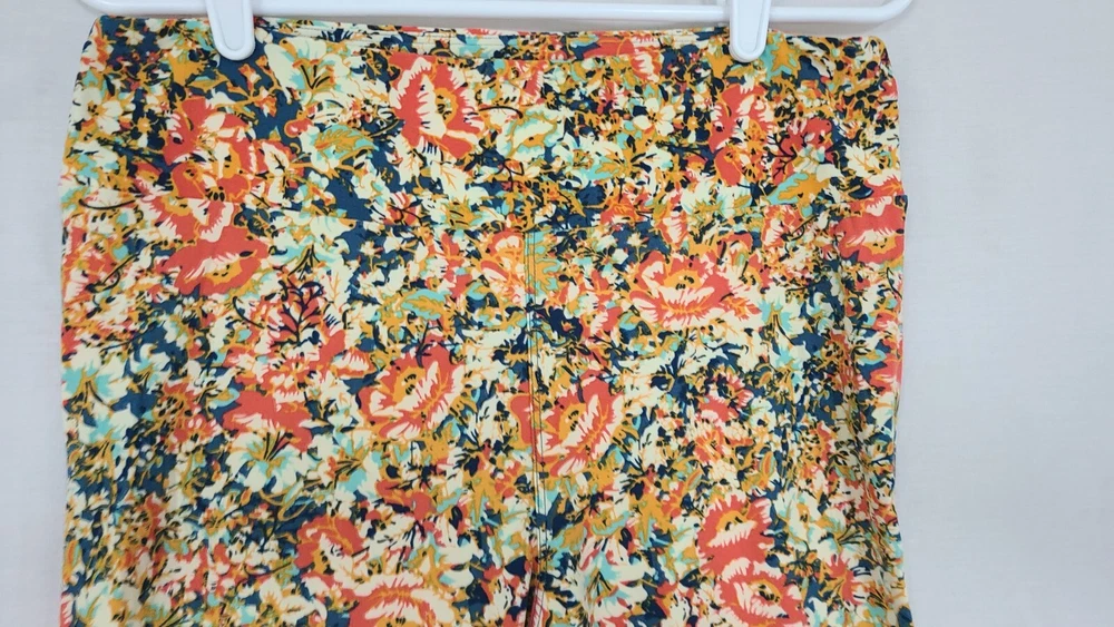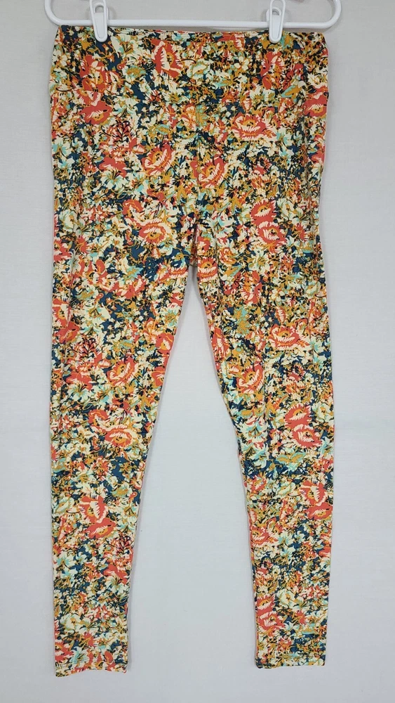 Add a pop of color to your wardrobe with these LuLaRoe TC Tall-Curvy Leggings. The ditsy floral print pattern in orange and teal is eye-catching and perfect for fall. Made from a comfortable polyester blend with stretch, these full-length leggings have a 27-inch inseam and are perfect for women of all sizes. The leggings feature the LuLaRoe brand and are part of the Tall & Curvy product line. Ideal for casual wear, these leggings are a must-have for any fashion-forward woman.