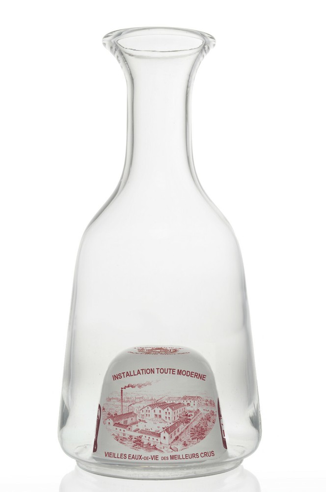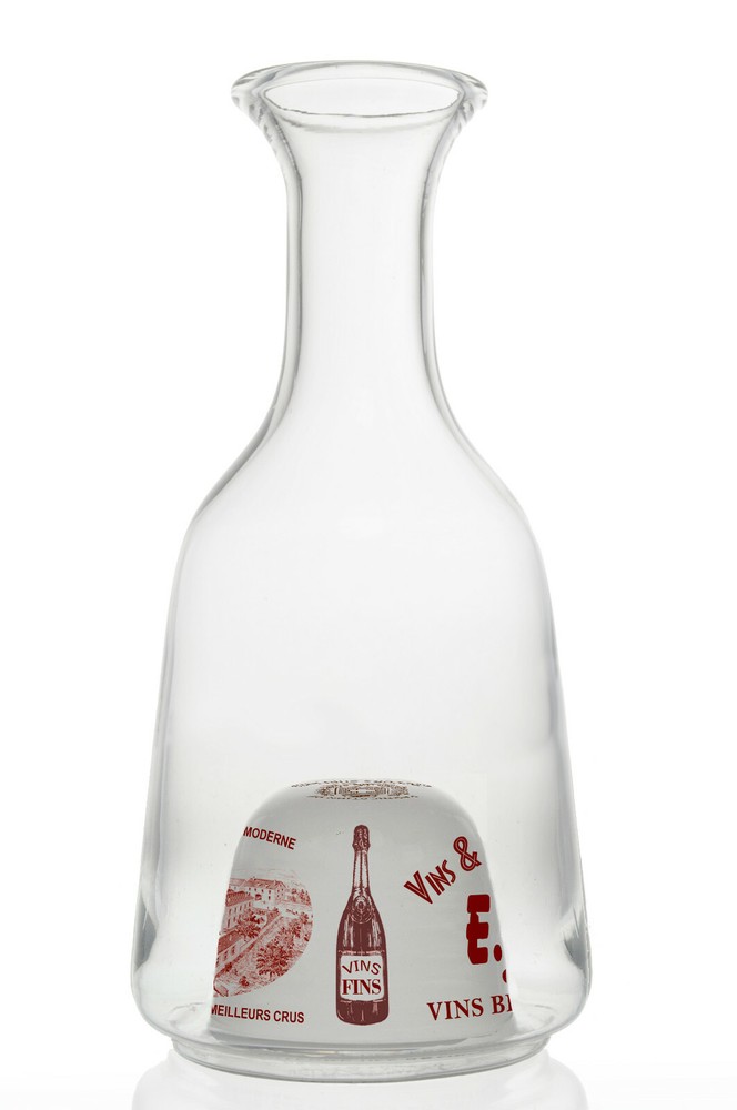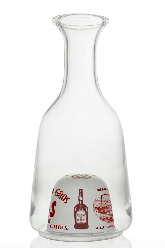 Lucas Loop Absinthe Water Carafe This unusual mouth blown carafe was inspired by similar pieces found in bars and bistros throughout Europe in the late 19th century. Once water is added to the carafe, the water acts to magnify and enlarges the text on the dome. The domed indention in the bottom of the carafe is referred to as the loop, or loupe, which means magnifying glass in French. This magnification was a useful way to grab ones attention as a popular marketing tool. Water carafes generally sat on bistro tables and were the most common method of preparing a traditional French/Swiss absinthe during the Belle Époque. The correct technique in using the carafe to make an absinthe is to slowly pour, or drip, the water onto the sugar cubes until the sugar has completely dissolved from the spoon and fallen into the glass of absinthe as sugar water. Since absinthe is made to one's own taste, the amount of water (and sugar) added is decided by the preparer. Measures approximately 9.25" (23.3 cm) tall. Base measures approximately 4.375" (11.1 cm) in diameter. Holds approximately 25 fl oz (.73 L). Mouth blown, clear glass. Imported. Ships UPS or USPS within 1 business day after payment !!! We ship WORLDWIDE !!!