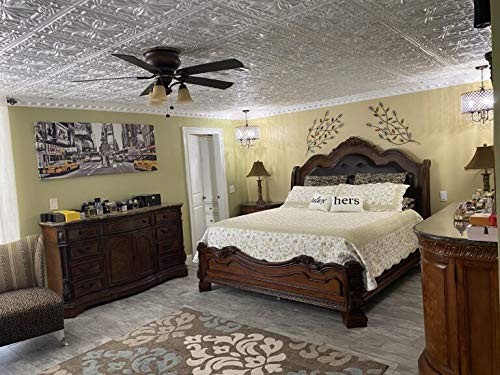 Designed to go over popcorn ceilings and most other surfaces without the need for expensive tools. Made from lightweight styrofoam, these tiles are easy to handle while providing added insulation. Paintable with any water-based paint to match your decor. Easy to clean and maintain, ensuring long-lasting beauty with minimal upkeep. Not for drop ceilings, not for commercial use.