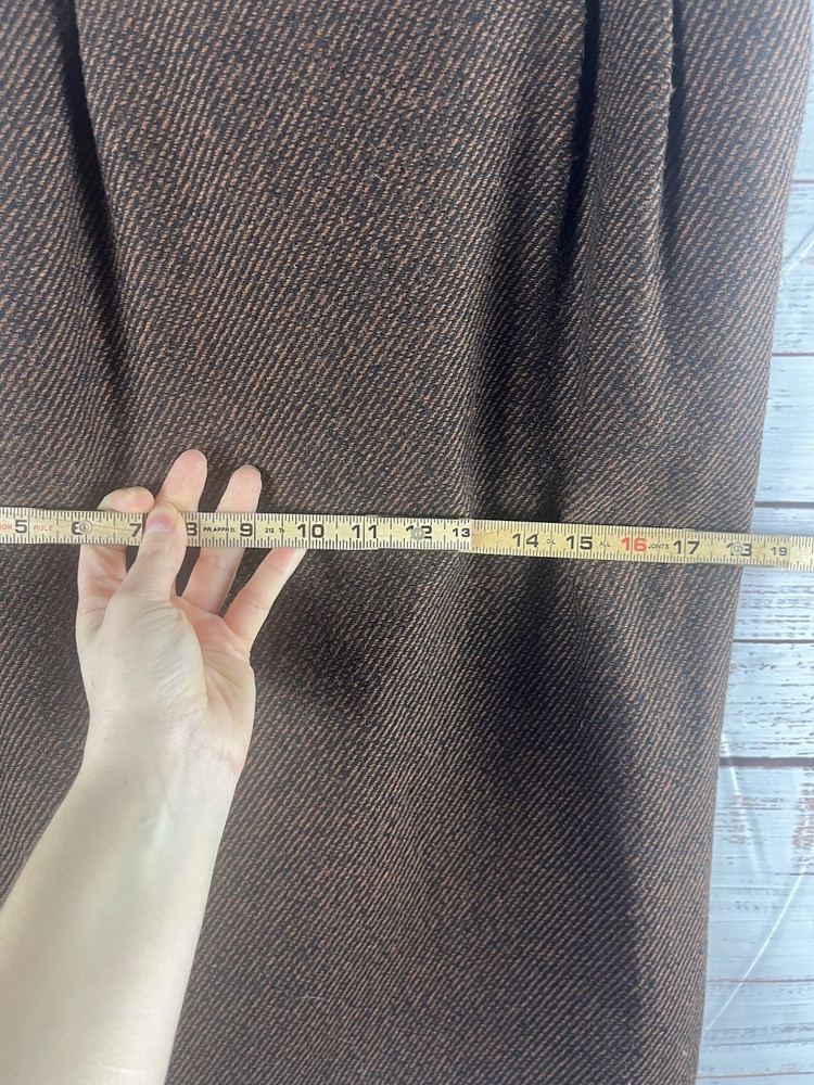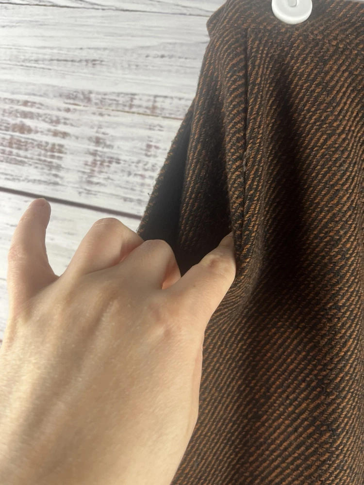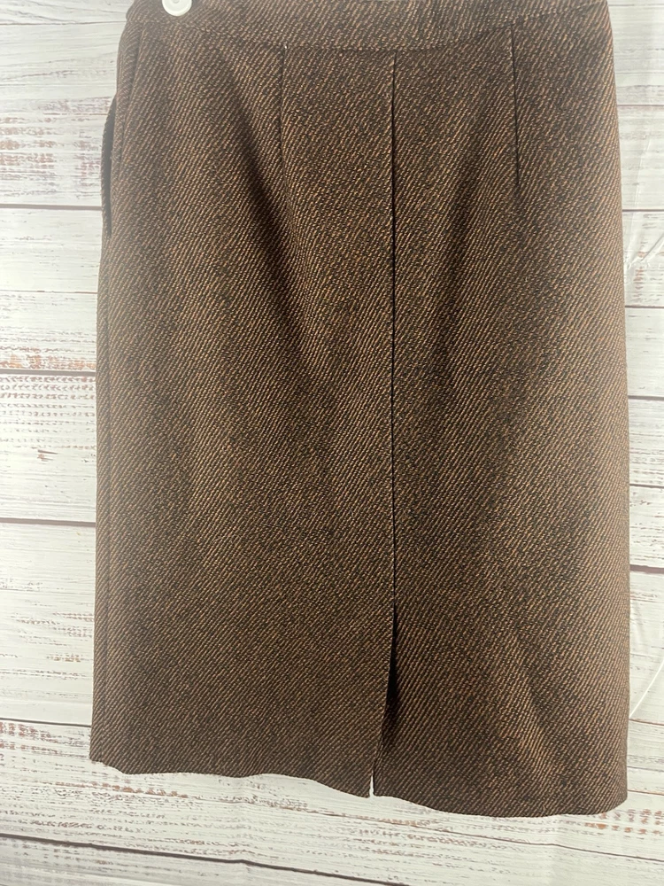 This Lucia Midi Skirt is designed for women in a size 6 with a classic preppy style. The skirt features a brown plaid pattern with a wool blend material, providing warmth and durability. With a knee-length and mid-rise design, it offers a comfortable fit for everyday wear. The exterior color combination of brown and black gives it a versatile look that can easily be paired with different tops and shoes. Perfect for adding a touch of sophistication to any outfit.