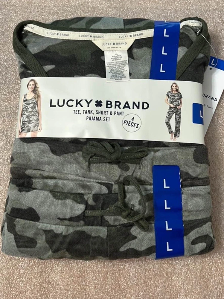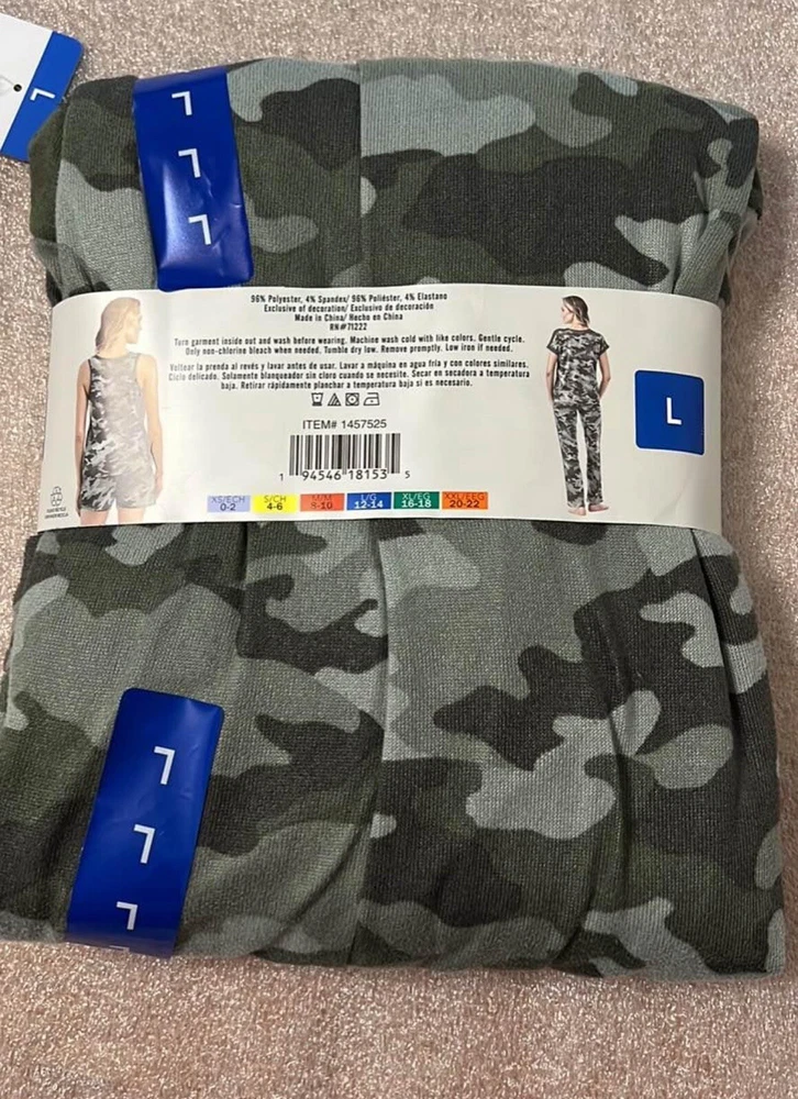 Features: Colors: Green (Distressed Camo) 4-piece set comes with: (1) drop shoulder tee, (1) scoop neck tank, (1) short, (1) full-length pant Super soft knit fabric with 4-way stretch Turn back cuff detail on tee Contrast binding details Adjustable drawstring on pant and short Made in China Content: 96% Polyester, 4% Spandex Exclusive of decoration