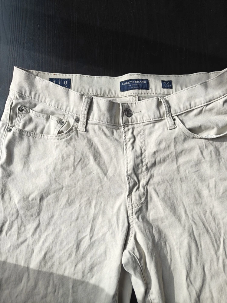 Lucky Brand Pants Mens 33x32 Beige 410 Athletic Slim Stretch Low Rise Meas 33x30