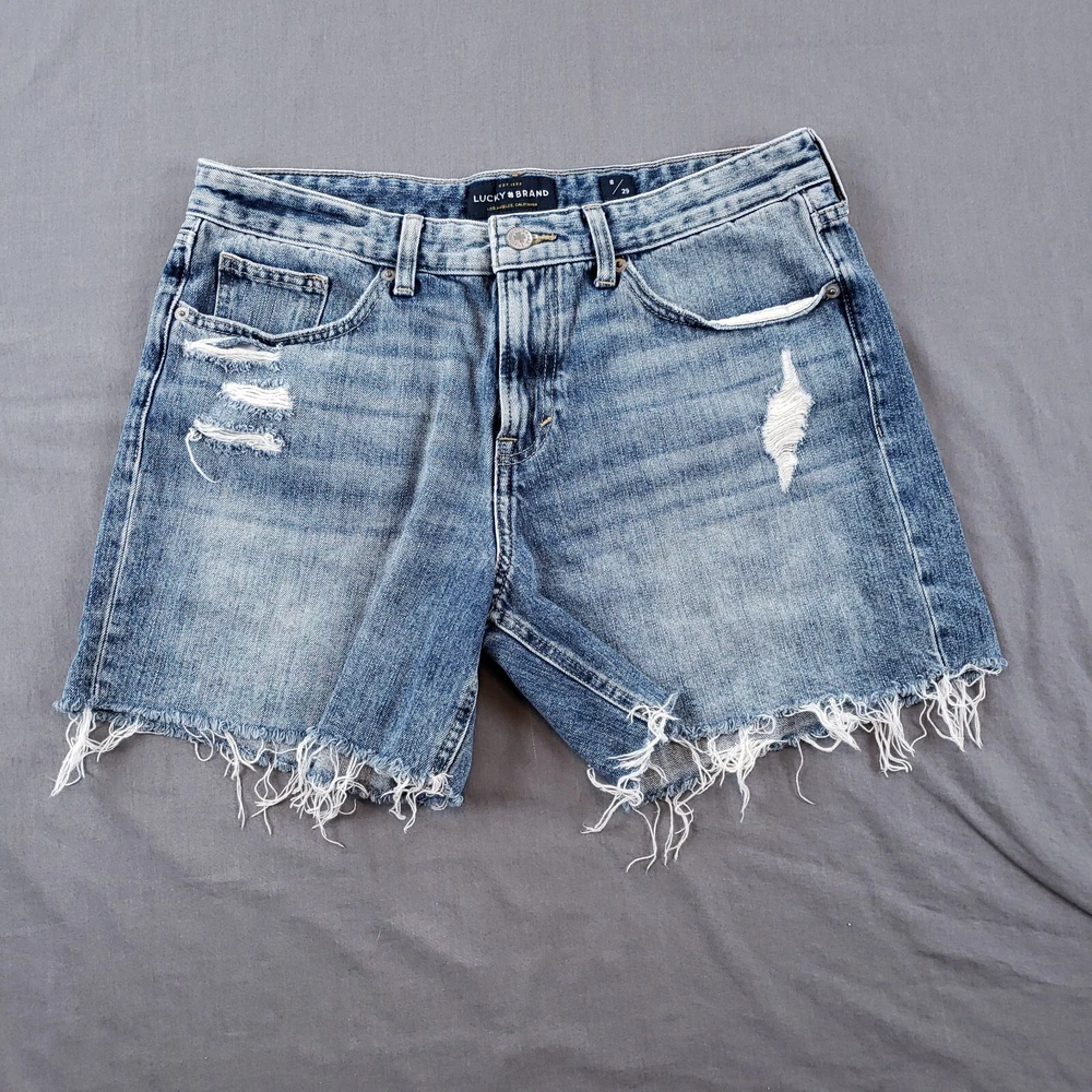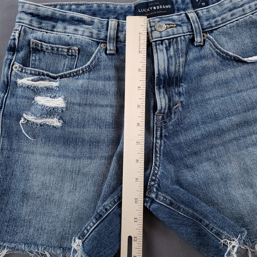Up for sale is a - Lucky Brand Shorts Size: 8/29 Measurements: See photos above for all measurements Check measurements for desired fit All measurements are approximate This is a distressed pair of Jeans. All Colors are bright and vibrant. All used clothing has been cleaned per Ebay policy. I will ship the item USPS Ground Advantage 2-5 Business Day Mail with a tracking number for confirmation I ship items every day so EXPECT a QUICK delivery! I ship every day Monday-Friday Please feel free to ask any questions you may have