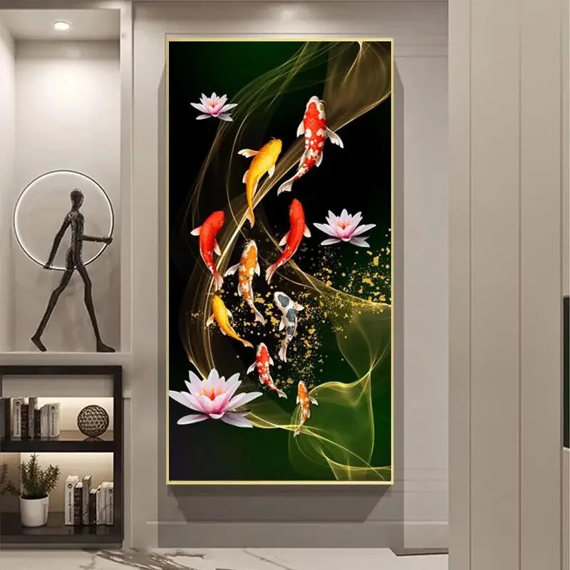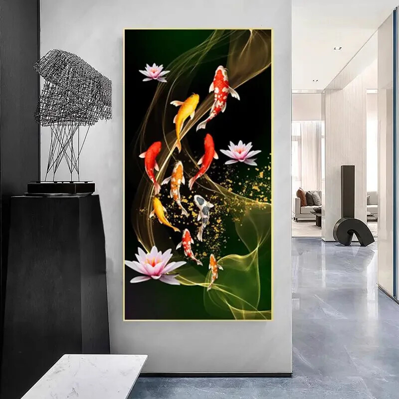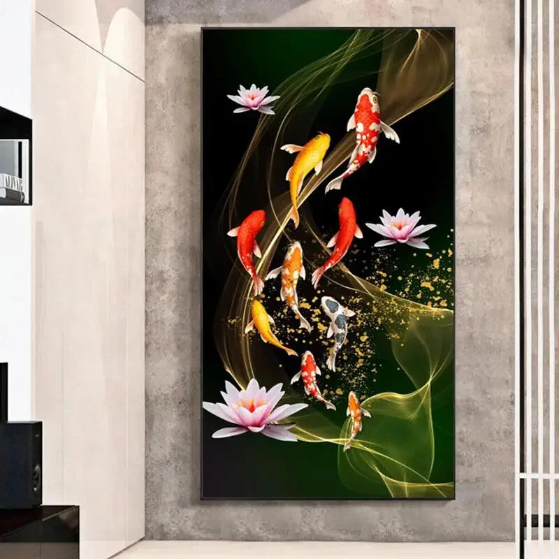 Lucky Koi Carp Landscape Poster Canvas Painting Wall Art Print Picture