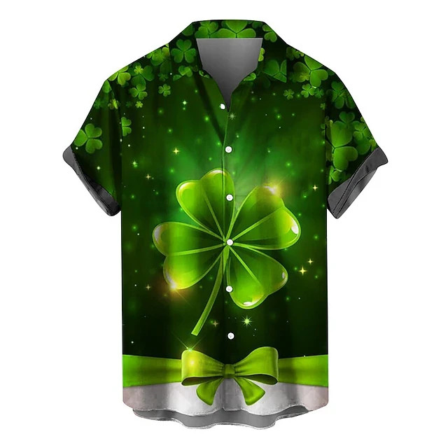 Lucky Shamrock St Patricks Day Hawaiian Shirt Button Up Short Sleeve Green Top