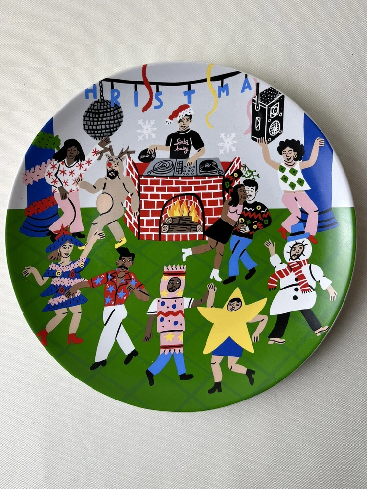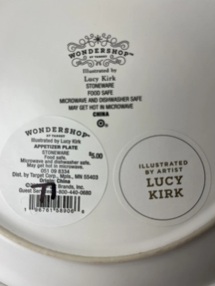 The Lucy Kirk 8.5" Stoneware Christmas Eclectic Appetizer Plate from Wondershop at Target is a festive round plate. Ideal for serving appetizers, salad or dessert during the Christmas season. Made of multicolor stoneware, this plate adds a touch of holiday cheer to your dining table.
