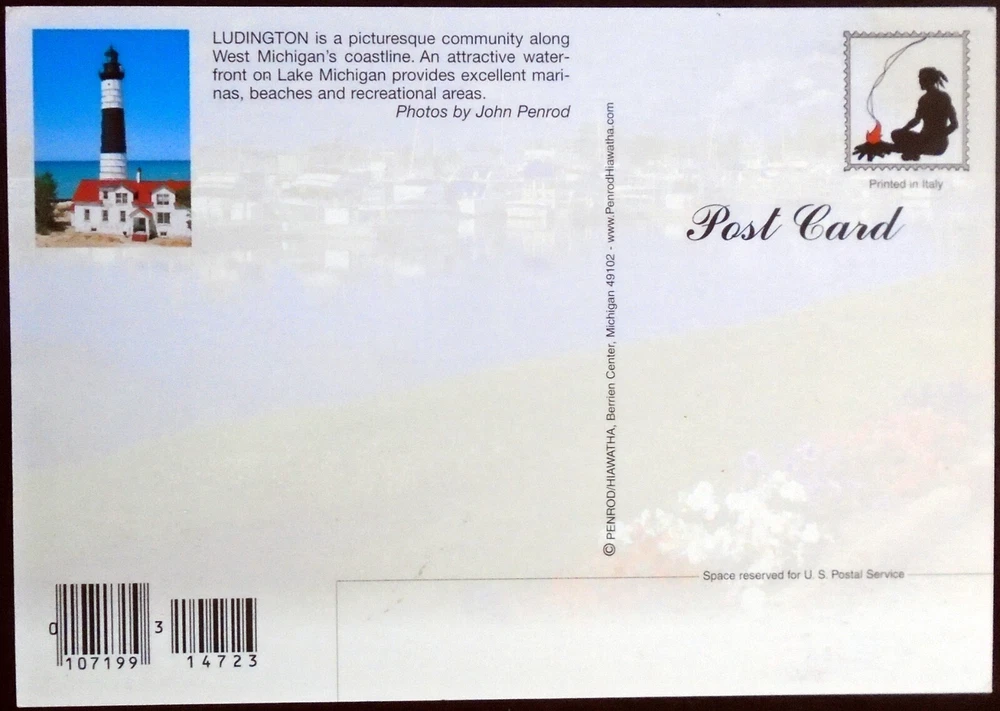 C6523. CATEGORY: Michigan – Lighthouse on back side. TYPE: 4 x 6 Color Postcard – Continental DESCRIPTION: Back: “Ludington is a picturesque community along West Michigan’s coastline. An attractive waterfront on Lake Michigan provides excellent marinas, beaches, and recreational areas. Photos by John Penrod.” CONDITION: Unused; not mailed . Minor corner and edge wear. Light soiling and age tanning. Very Good condition. … Sold AS IS. Look carefully at the pictures to Judge Condition for Yourself. Please pay for your order after Combining ALL ITEMS on one invoice! This saves both of us money! You save on S/H charges and I save on fees! If you plan to purchase multiple items, just put all the items you want into your Ebay cart, then press “REQUEST TOTAL” and I will be able to invoice you with combined shipping. Make sure you’re purchasing via computer, as this option is not available when buying with your phone. Once you have purchased an item and we have wrapped it for shipping, additional items CANNOT be added, and must be shipped separately. All postcards, vintage paper items and historical memorabilia are packaged with cardboard.