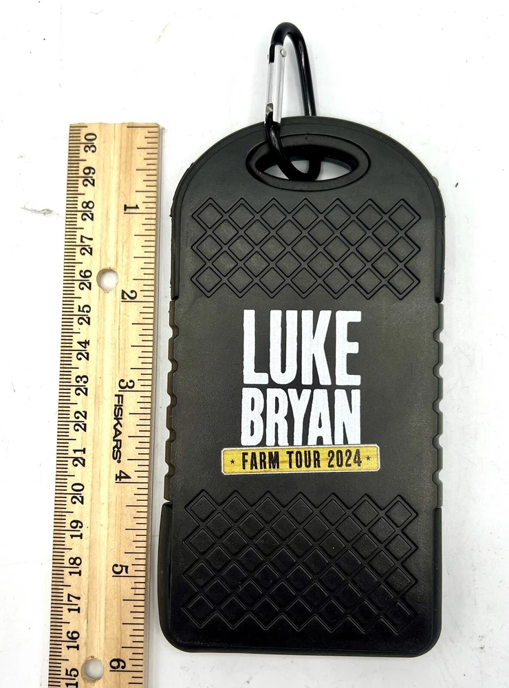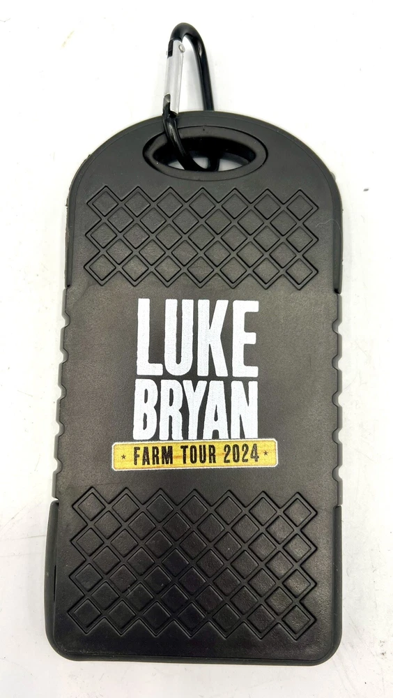 This is a solar-powered charger and power bank with a capacity of 4000 mAh, designed to charge devices quickly and efficiently. It features dual USB and micro-USB connectivity, and is compatible with most devices. The design and finish include the logo of Luke Bryan's Farm Tour 2023, making it a great accessory for fans. The charger is made of plastic, measures 5.5 inches in length, .5 inches in height, and 3 inches in width, and has a voltage of 5 V. It comes with fast shipping and is sold as a single unit.