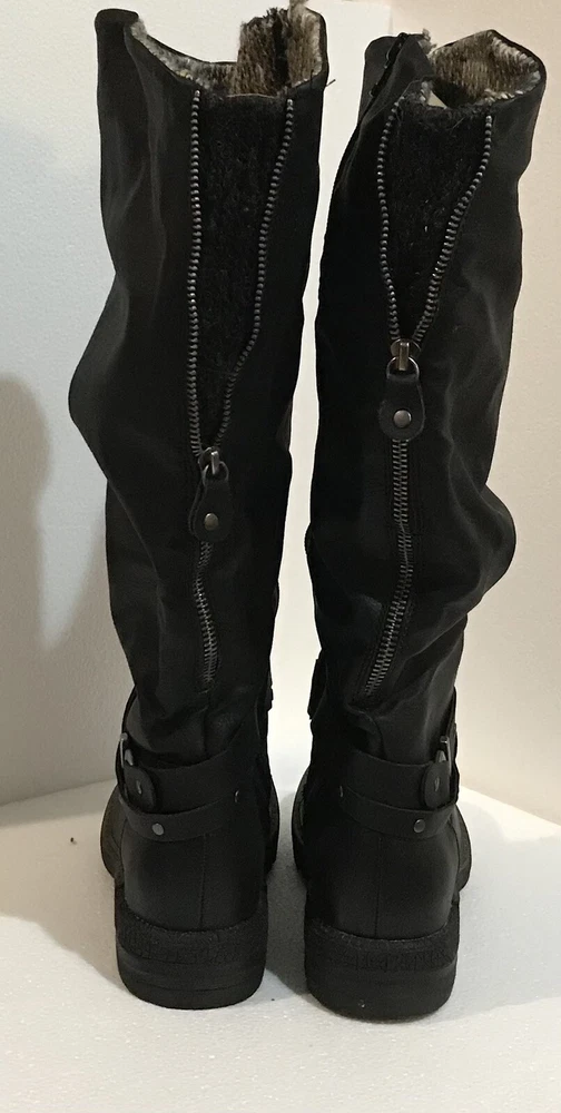 Get ready for the winter with these stylish and comfortable Lukees by MUK LUKS women's boots in black. Perfect for outdoor activities, travel, activewear, and casual wear, these boots feature a solid pattern and a blended fabric upper material made of faux leather. The boots are lined with faux fur for added warmth and comfort, and they come with a low heel height of 1-1.9 inches. These boots have a zip closure and fur trim accents, making them both stylish and functional. They are available in women's US shoe size 6.5 and are designed to be riding boots. Don't miss out on the chance to add these versatile boots to your winter wardrobe. Packaged & shipped with care.