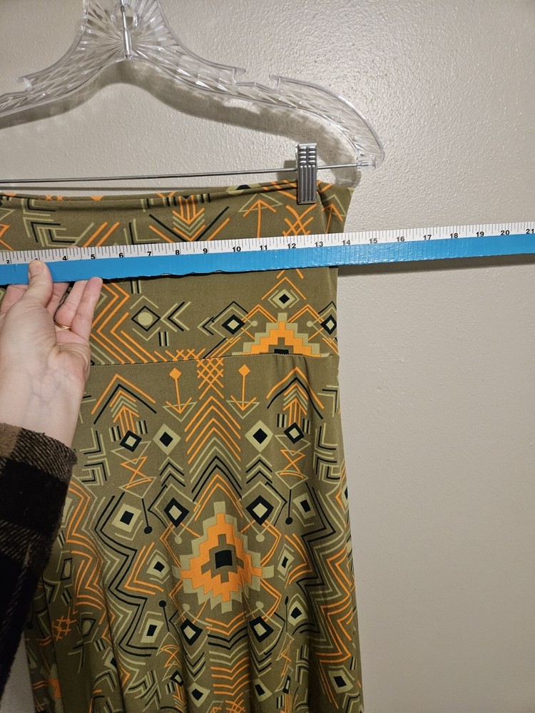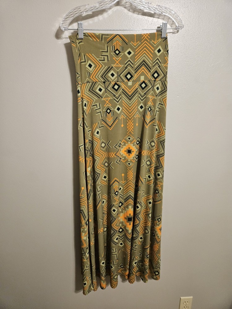 LulaRoe Womens Maxi Skirt Green And Orange Aztec Flowy Stretch Size XS Condition is listed in the condition description. Feel free to look at the pictures for better understanding of the condition. Thank you for considering this item .