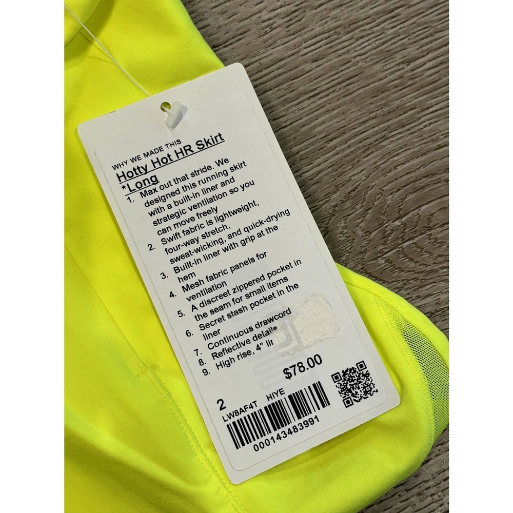 NWT LULULEMON Hotty Hot HR Skirt Long SZ 2 HIYE Highlighter Yellow Golf Tennis