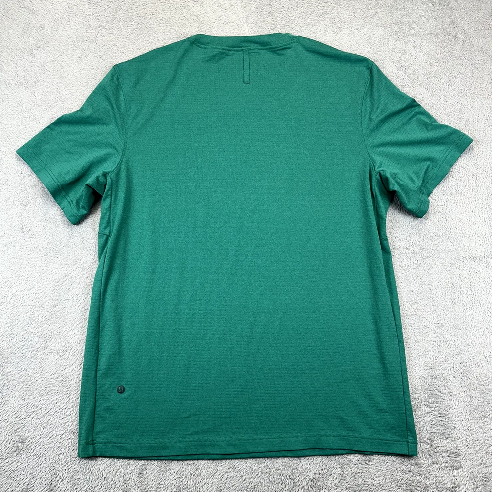 Features: Breathable, Lightweight, Stretch Pattern: Solid Occasion: Activewear Sleeve Length: Short Sleeve Vintage: No Neckline: Crew Neck Closure: Pullover Chest Size: 44 in Garment Care: Machine Washable Handmade: No Color: Green Brand: Lululemon Department: Men Fit: Relaxed Style: Relaxed Fit Season: Fall, Spring, Summer Shirt Length: 28 in Compression Level: Mild Fabric Wash: Medium Type: T-Shirt Size Type: Regular Performance/Activity: Beach, CrossFit, Cross Training, Gym & Training, Hiking, Running & Jogging, School, Tennis, Track & Field, Volleyball, Walking, Weightlifting, Yoga, Designed for Training Size: L Personalize: No Country/Region of Manufacture: Unknown Theme: Outdoor, Preppy, Sports, minimalist, gym, running