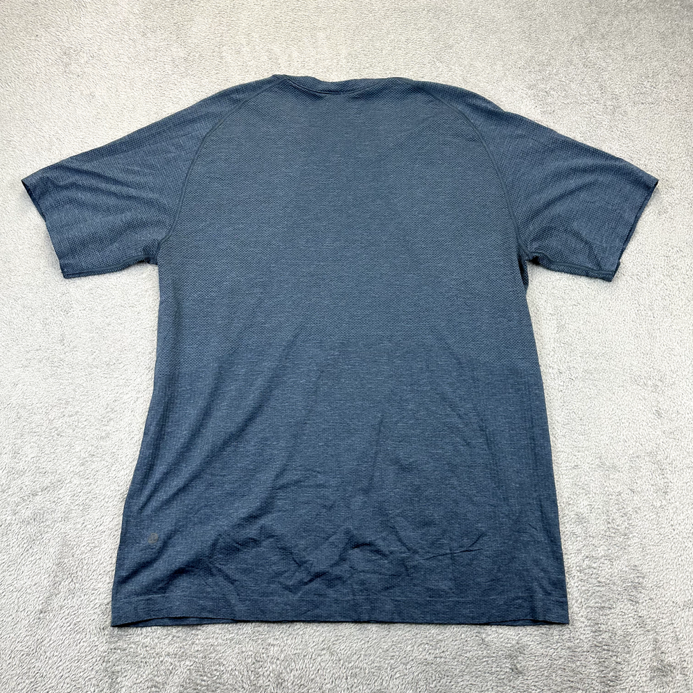 Neckline: Crew Neck Fabric Wash: Medium Brand: Lululemon Pattern: Solid Theme: Modern, Sports Accents: Logo Compression Level: Mild Season: Spring, Summer Closure: Pullover Garment Care: Machine Washable Size Type: Regular Fit: Regular Handmade: No Type: T-Shirt Performance/Activity: Gym & Training, Hiking, Running & Jogging, School, Squash, Tennis, Typing, Walking, Yoga Chest Size: 44 in Department: Men Style: Pullover Fabric Type: Jersey Country/Region of Manufacture: Unknown Size: XL Vintage: No Features: Breathable, Easy Care, Lightweight, Moisture Wicking, Quick Dry, Stretch Personalize: No Color: Blue Sleeve Type: Casual Sleeve Product Line: Lululemon Metal Vent Shirt Length: 29 in Occasion: Activewear, Casual, Travel Sleeve Length: Short Sleeve Model: Lululemon Metal Vent Tech