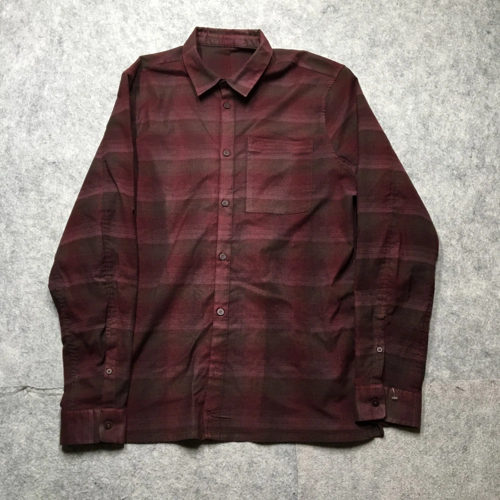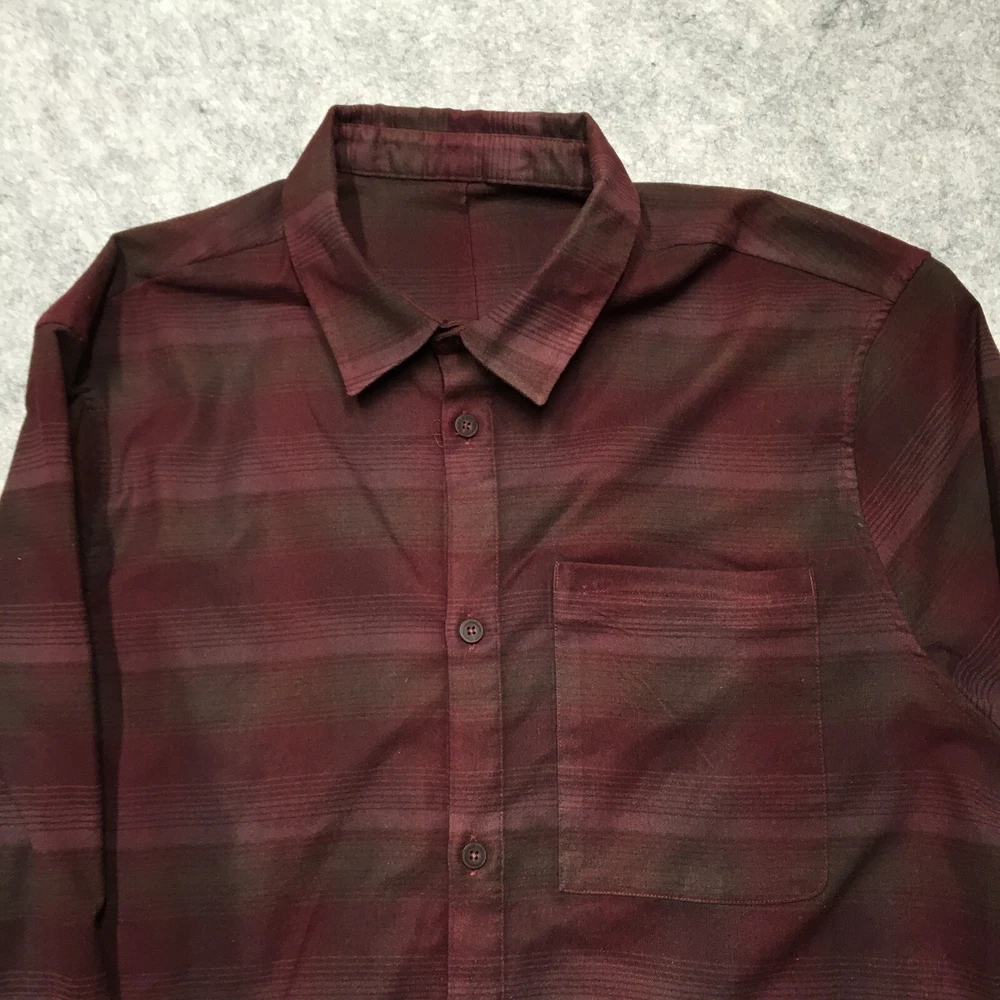 Color: Red Features: Pockets, Stretch Garment Care: Machine Washable Season: Fall, Spring, Winter Vintage: No Personalize: No Material: Cotton Accents: Button Occasion: Casual, Workwear Fit: Classic Fabric Type: Flannel Handmade: No Seller Notes: “Good Used Condition! No stains, rips, or holes. See photos for condition specifics and measurements.” Sleeve Length: Long Sleeve Graphic Print: No Size Type: Regular Size: XL Brand: Lululemon Neckline: Collared Department: Men Theme: Classic, Outdoor Collar Style: Point Closure: Button Type: Button-Up Pattern: Plaid