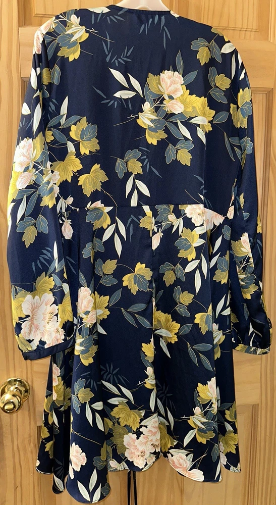 This elegant wrap dress by Lulus features a beautiful floral print in navy blue, perfect for any romantic occasion. The dress has a V-neckline with a pleated and ruffled accent, along with a layered and bowed closure. The long balloon sleeves and slimming design make this dress both stylish and comfortable. Made of high-quality polyester satin, this dress is machine washable and easy to care for. It comes in size XL and is suitable for various occasions such as weddings, holy communions, parties, and even casual and formal events. The dress has a short length and is perfect for summer, fall, and spring seasons. This dress is sure to make you feel like a princess on your next vacation or at your next party.