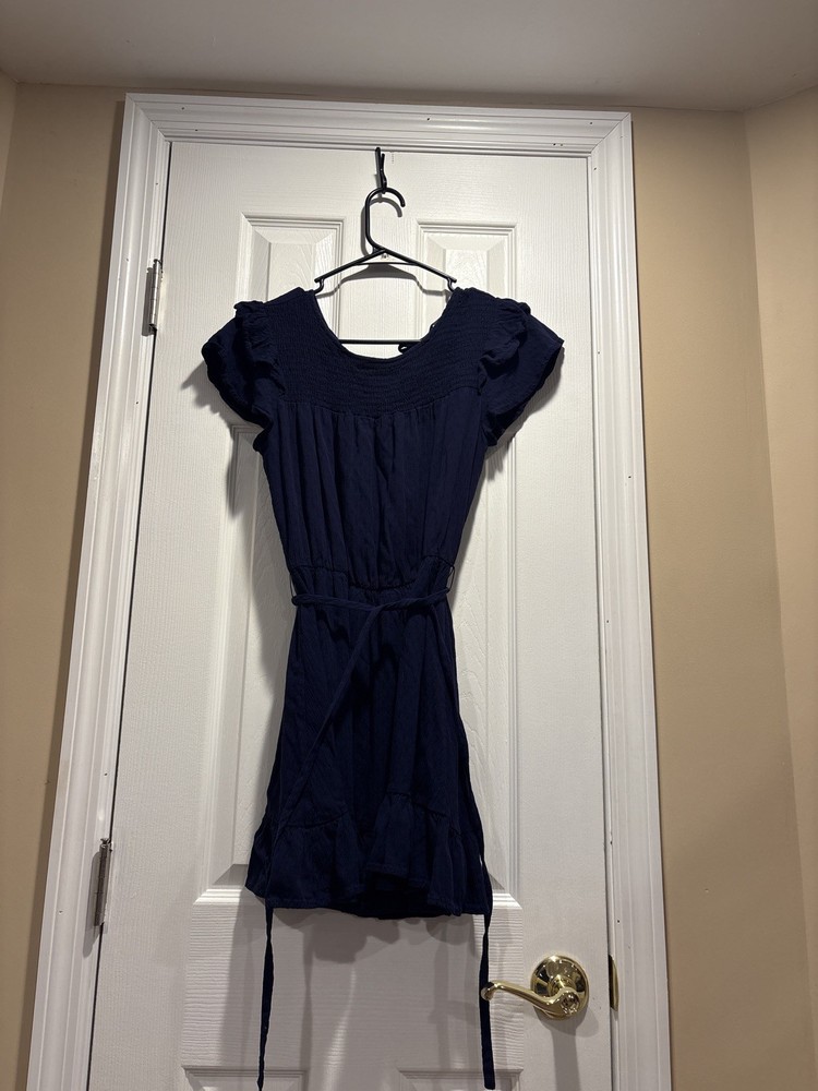 dress featuring: • Smocked neckline & shoulders • Flutter short sleeves • Adjustable waist tie for a flattering fit • Ruffle hemline detail • Lightweight woven fabric • Pullover style Perfect for casual wear, date nights, or layering as a tunic.