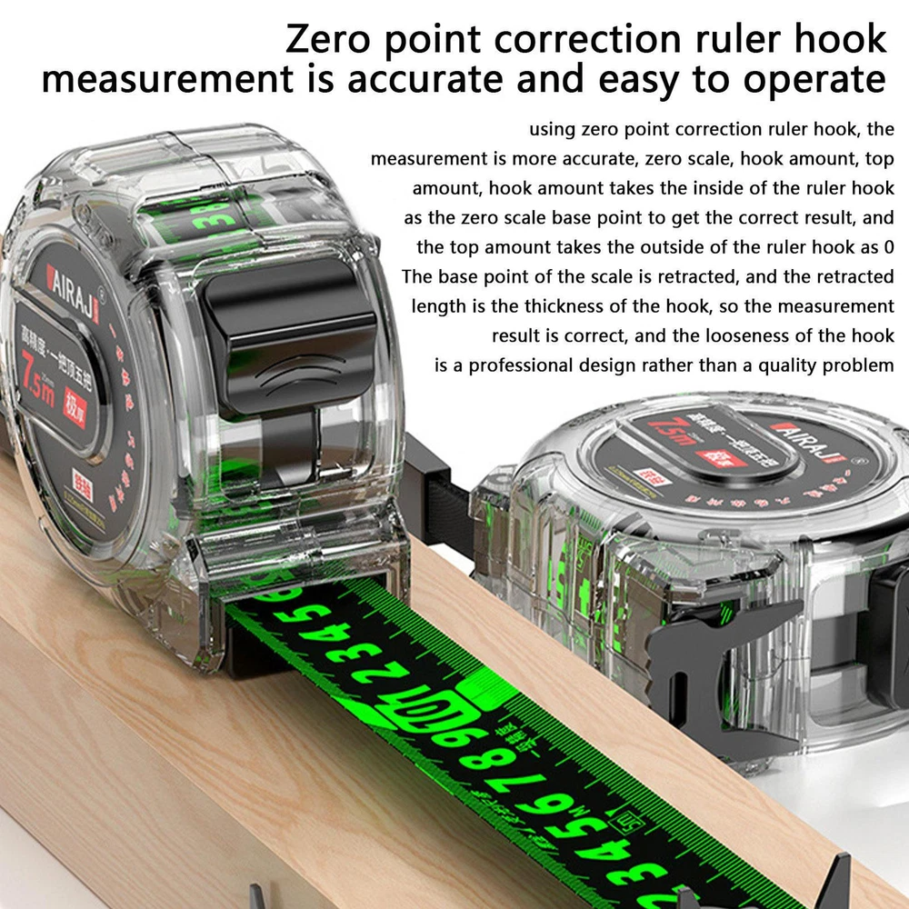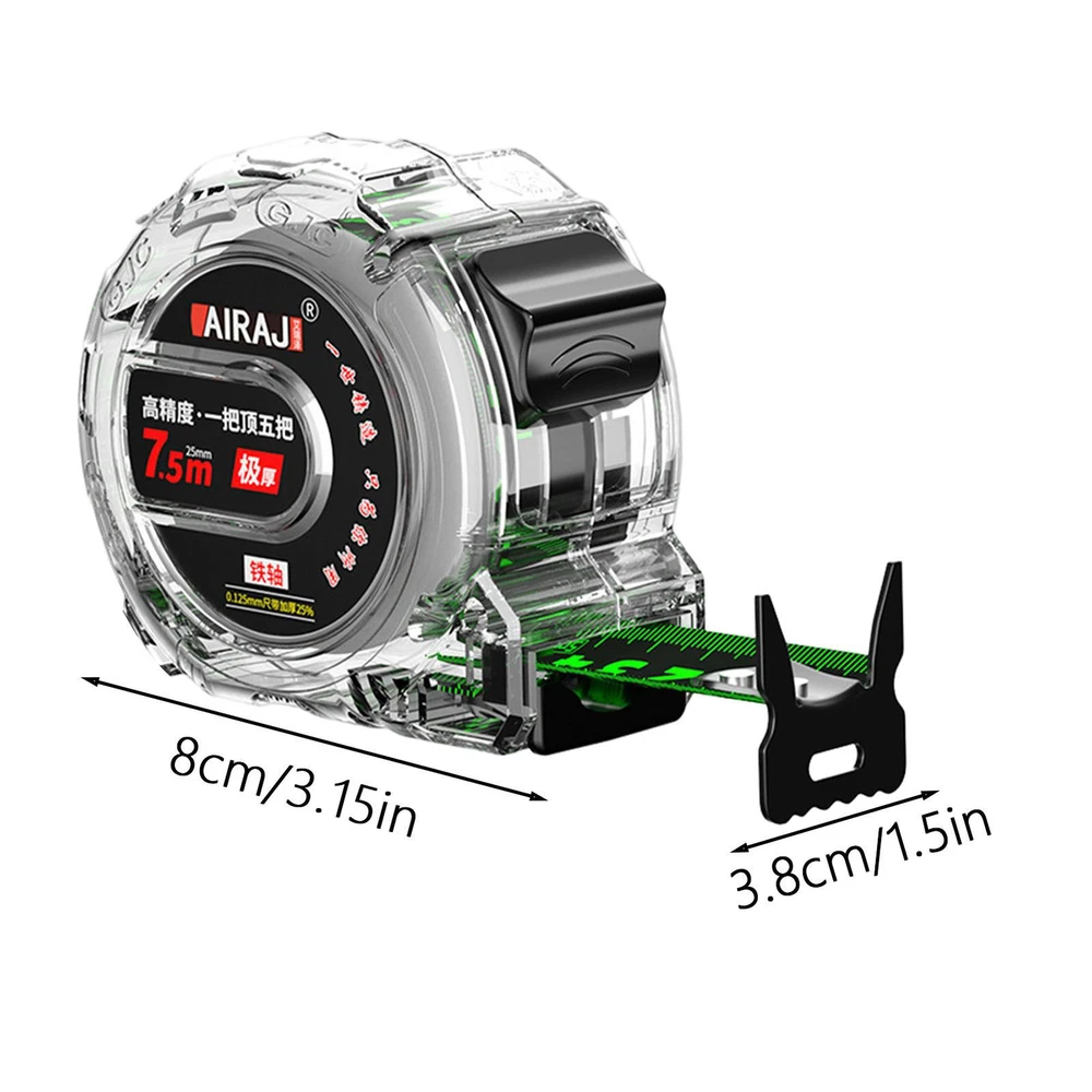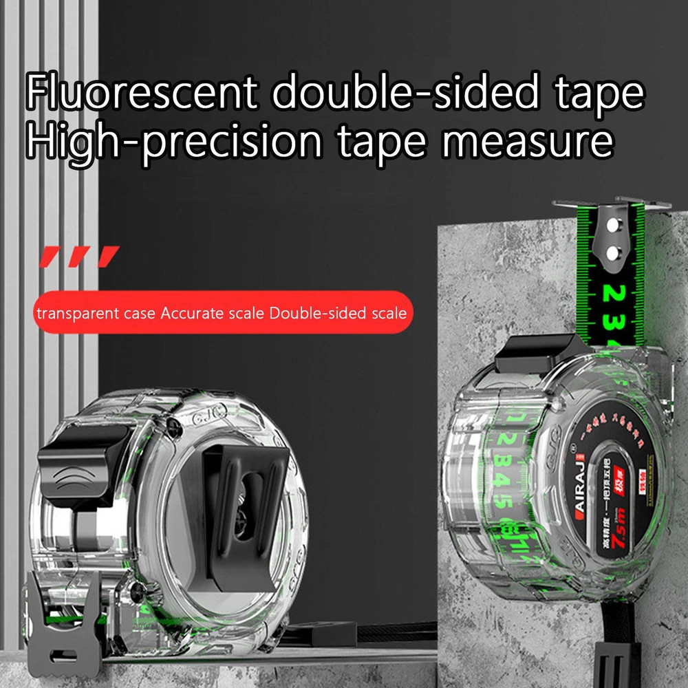 Luminescent Tape Measure Dual Sided Measuring Tape Self-locking Measurement Tape Bullet Points: Fluorescence Scale: Featuring a fluorescent coating, this light up tape measure enhances visibility under all lighting conditions, ensuring easy use even in the dark. With a non-reflective scale and a transparent design, it facilitates precise measurements without any fading or rubbing off. Functional Design: For accurate and reliable measurements every time, no matter the lighting conditions. This tape measure features a self-locking mechanism that ensures that the tape is securely fixed in place, and a clear tape that glows in the dark. Long-lasting Durability: Featuring a durable ABS shell and secure nylon ropes and metal clips, this tape measure is perfect to carry around. It is equipped with a dual-sided measuring tape that is more durable than regular tapes and glows in the dark, making it visible even in low-light areas. Simple To Apply: A versatile tool for precise measurements. Whether you need to measure your height, the length of a wall, or the distance between two objects, this tape measure can do it all. It has a double-sided design, so you can read the numbers from both sides. Widely Applicable: Illuminate your measurements in the dark with our light up tape measure. Its transparent design with large, clear, and easy-to-read numbers makes it perfect for construction projects. No more confusion, just accurate and precise measurements. Ideal for DIY enthusiasts. Measure with ease using our transparent tape measure. The clear and easy to read markings allow for accurate readings of distance. The anti drop shell ensures durability and longevity for everyday use. A must-have tool for any DIY enthusiast or professional. Specification: Product name: Luminous tape measure Size: A: Length of 5 meters, width of 19mm, shell length and thickness of 70 * 32mm B: Length of 5 meters, width of 25mm, shell length and thickness of 70 * 38mm C: Foot length 7.5 meters, foot width 25mm, foot shell length thickness 80 * 38mm D: Length of 10 meters, width of 25mm, shell length and thickness of 90 * 38mm Material: ABS Packing List: Luminous tape measure x 1 Note: Due to different lighting and screen settings, item colors may vary slightly from the pictures. Due to the difference in manual measurement, please allow a 1-2cm difference in size. 1.You can make a Credit payment via Paypal.Paypal will let you use MasterCard,Visa to pay. 2.Payment should be completed within 5 days after auction closed, or unpaid dispute will be filed for an closing auction.An unpaid case will be filled after 4 days. ● We strive for 100% customer satisfaction ! ● Positive Feedback is very important to us. ● We hope that you contact us immediately BEFORE you give us neutral or negative feedback, so that we can satisfactorily address your concerns. ● We promise to offer the lowest price and high quality produce. Dear buyers : ● Welcome to my store ! ● Your satisfaction is our top goal,we appreciate your patronizing. ● If you have any questions, please contact us before leave negative or neutral feedback, we will try our best to solve the issue to your satisfaction, thanks ! ● If you are satisfied with our service, please rate the details of the transaction (Detailed Seller Ratings) on eBay. ● Please always talk to us via ebay Message. ● We appreciate your business and look forward to growing our e-Bay sales with satisfied customers.