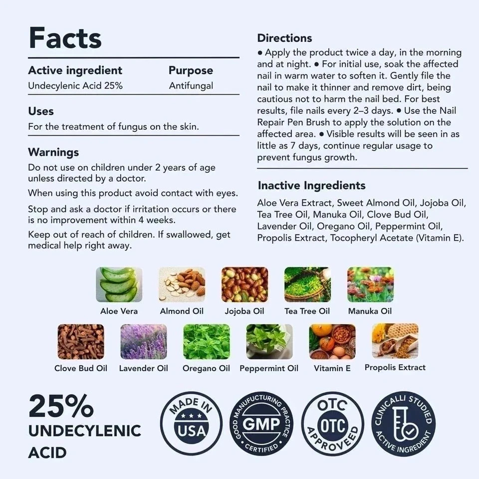 Lunavia Antifungal Treatment Pen – Clinician-Developed Formula for Clear, Healthy Nails Tackle stubborn nail fungus directly at the source. The Lunavia Antifungal Pen delivers a precise, high-strength formula that works deep to eliminate infection, promote healthy regrowth, and restore nail clarity—without the mess of creams. 🟣 Why Choose Lunavia? ✅ 25% Undecylenic Acid – A clinically-proven, pharmaceutical-grade antifungal that targets infection-causing fungi and supports clear nail growth. ✅ Botanical Defense Complex – Tea Tree, Clove Bud, and Lavender Oils provide added antimicrobial and soothing support for skin around nails. ✅ Precision Pen Application – Twist-to-dispense brush delivers targeted treatment directly to nails and cuticles—no waste, no mess. ✅ Fast-Absorbing & Non-Greasy – Penetrates deeply into the nail bed without leaving oily residue. ✅ Complete 3-Pack Value – Includes 3 pens (3ml each), enough for a consistent, full treatment cycle. 🔬 Dual-Action Science Lunavia combines pharmaceutical-strength undecylenic acid to break down fungal structures, with nourishing oils like jojoba to maintain skin barrier health. This two-part approach helps treat infection while supporting lasting nail clarity. 📋 How to Use Clean and dry affected nails. Twist pen base to dispense liquid onto brush. Apply a thin layer to nail and surrounding skin. Let dry completely. Use twice daily for best results. Tip: Gently file thickened nails before application to enhance absorption.