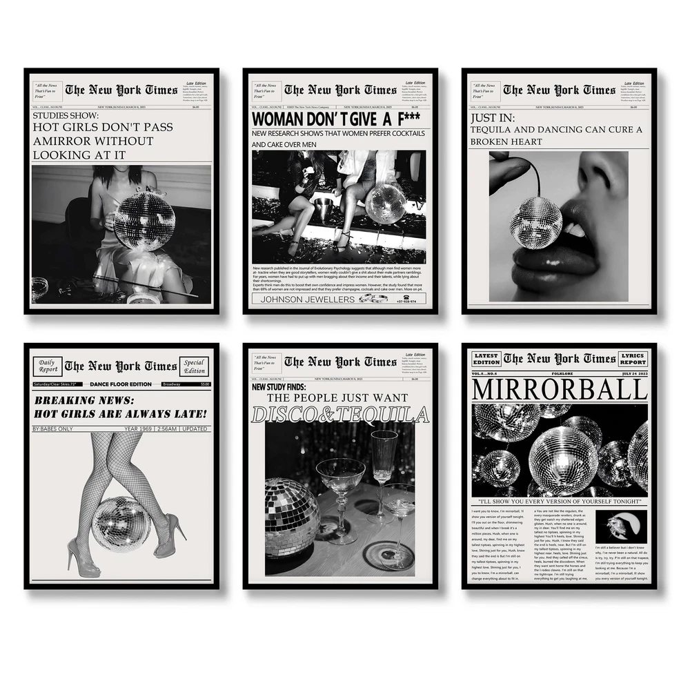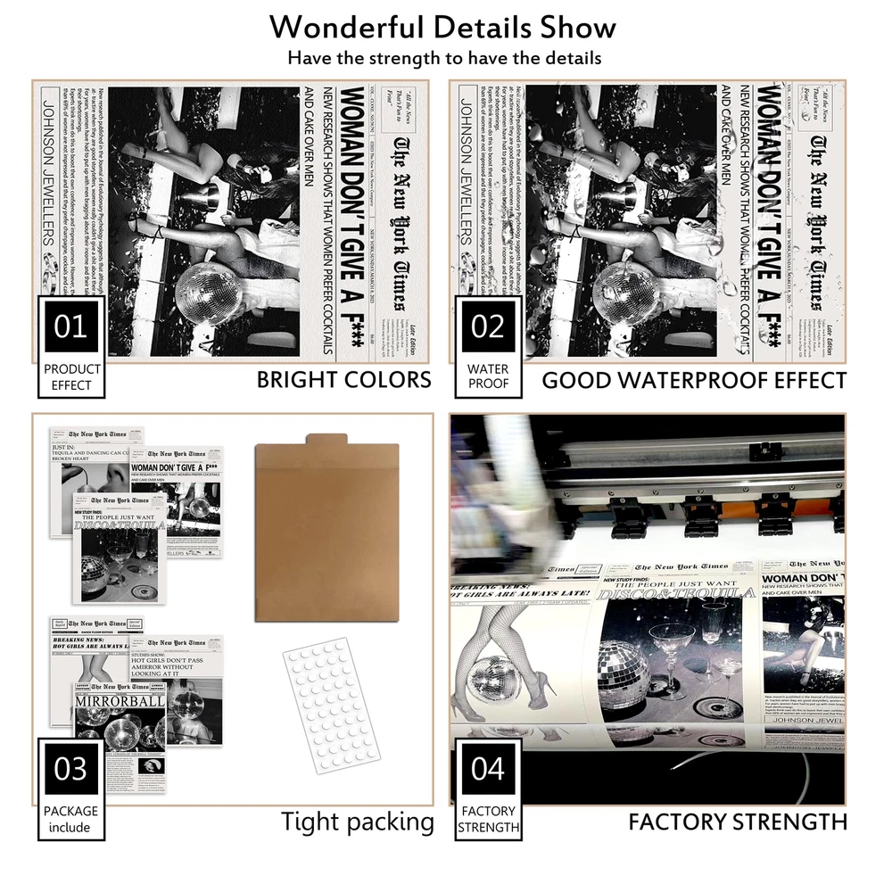Vintage Trendy Music Wall Art Aesthetics Canvas Funky Black and White Fashion Disco Tequila Poster Description: Factory Strength:We are a professional decorative painting manufacturer with many years of manufacturing and sales experience.All the posters are original designs. Specifications: Size: (Optional) Material: Canvas Types: Canvas Painting (Not Hand Oil Painting) Medium: Waterproof Ink Technics: Spray Painting Feature: Soft texture,Bright colors,Hight toughness,Anti-wrinkle,Fade-resistant These Aesthetic wall decors can be widely applied in home decoration, such as Living Room, Bedroom, Children's Room, Background Wall, Wedding Decoration, Kitchen Restaurant, Hotel, Hospital, Bar etc. The poster is printed on canvas, it is a kind of better material for the poster, it is strong,thick,waterproof.It is the best choice for modern wall decoration,and can also be used as a gift for friends.It is perfect gift for any accasion. Package Includes: 6 x Wall Art Prints (UNFRAMED),50 glue points After-sale service: The prints are packaged in a sturdy gift box, ensuring the product's quality when delivered to you. Wall decors is sent by Amazon and will reach your home quickly. If you are not satisfied with the purchased items for any reason, you can return it at any time. We hope to give you a better shopping experience. Factory Strength - We are a professional decorative painting manufacturer with many years of manufacturing and sales experience.All the posters are original designs High-quality canvas - The poster adopts high-quality canvas and the most advanced Giclee printing technology.It is bright colors, soft texture, hight toughness, anti-wrinkle, fade-resistant feature and use waterproof inks Easy to decorate - Our package contains 50 glue points,so you can paste print posters art directly with them.Or you can match your favorite frame for installation Widely applied - These wall decors can be widely applied in home decoration.They will light up your house, attract lots of attentions, you also can give these wall decors to your friends, or other persons as an exquisite present.It is perfect gift for any accasion After-sale service - The prints are packaged in a sturdy gift box, ensuring the product's quality when delivered to you.Wall decors is sent by Amazon and will reach your home quickly.If you are not satisfied with the purchased items for any reason, you can return it at any time. We hope to give you a better shopping experience.