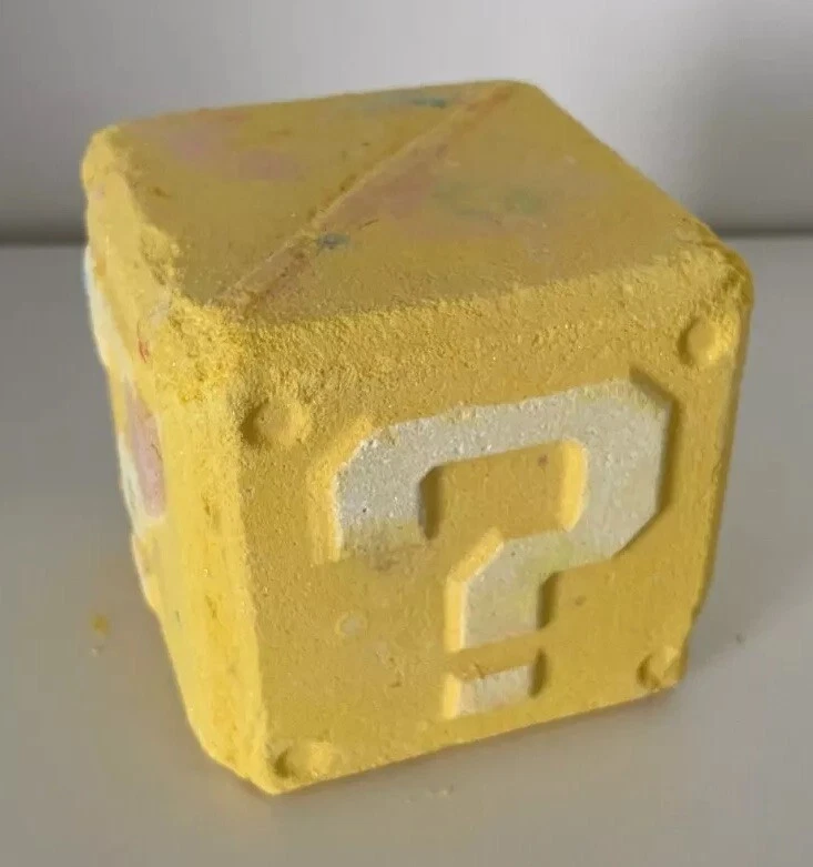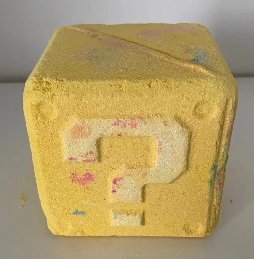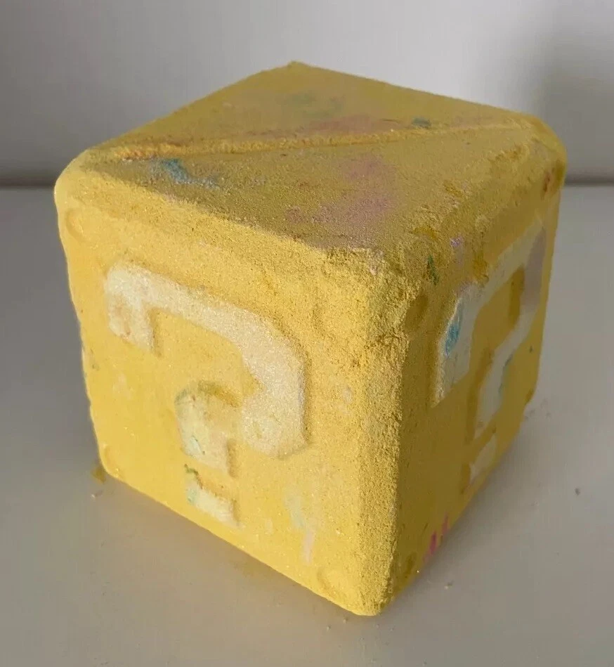 Lush x The Super Mario Bros Movie Mystery Question Block Bath Bomb + Body Soap.